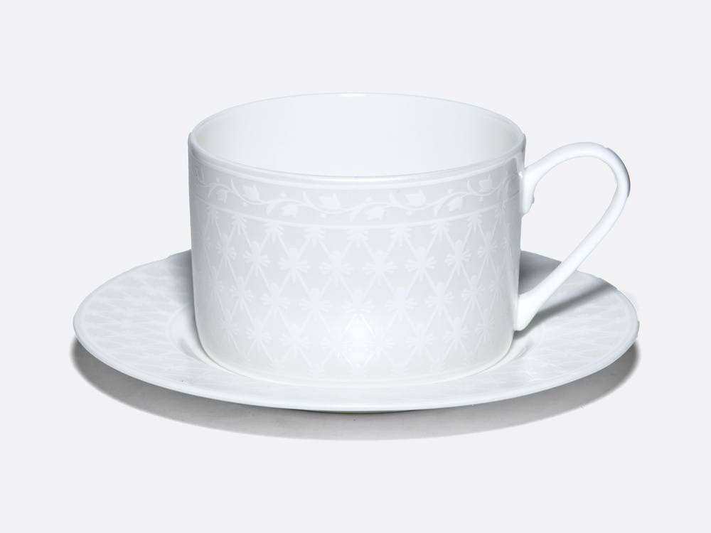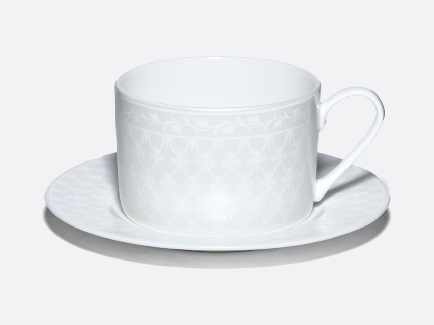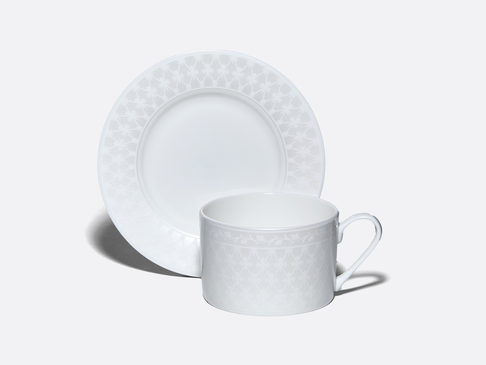 Чайная пара из коллекции «Жемчужная сетка» – это новое прочтение классического узора «кобальтовая сетка», ставшего визитной карточкой Императорского фарфорового завода. Дизайн строится на изящном контрасте фактур: благородную матовую поверхность украшает рельефный орнамент.