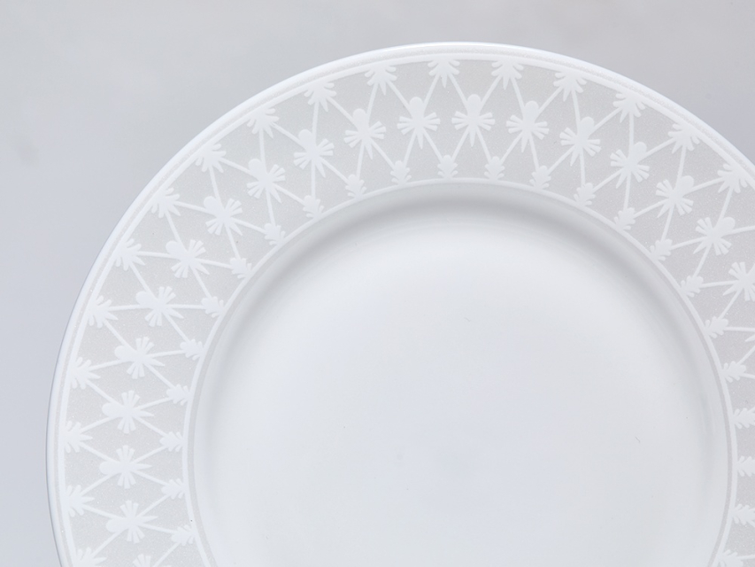 Мягкое сияние перламутра и лаконичные линии формы «Идиллия» подчеркивают изящество костяного фарфора, наполняя интерьер светом и аристократизмом.
