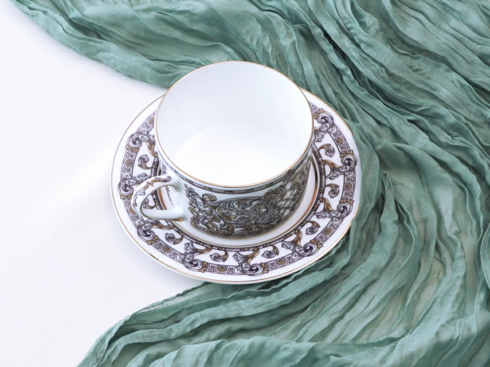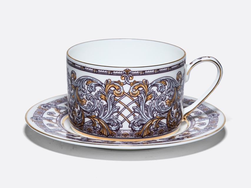 Чайная пара «Барокко» из костяного фарфора от художника Светланы Козлобродовой приглашает в эпоху роскоши. Белоснежный фарфор служит идеальным холстом для сложного декора, вдохновленного стилем барокко с его торжественностью и богатством орнамента.