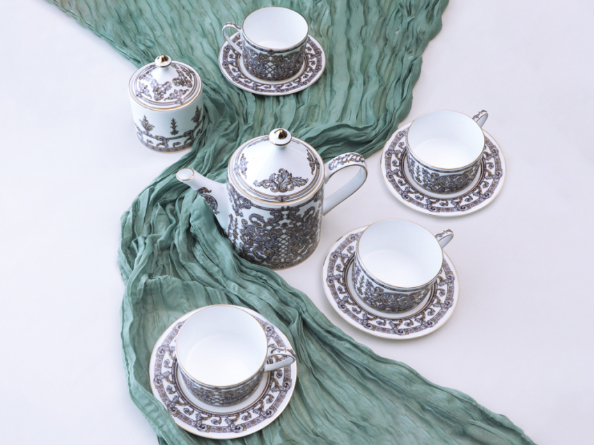 Коллекция «Барокко» – это воплощение дворцовой роскоши в современном фарфоре. Дизайн сочетает строгие формы с динамичным орнаментом, переосмысливая классическое наследие Императорского фарфорового завода. Уникальные узоры сервиза навеяны архитектурным убранством российских и зарубежных дворцов, мастерски перенося царственный шик на фарфор.