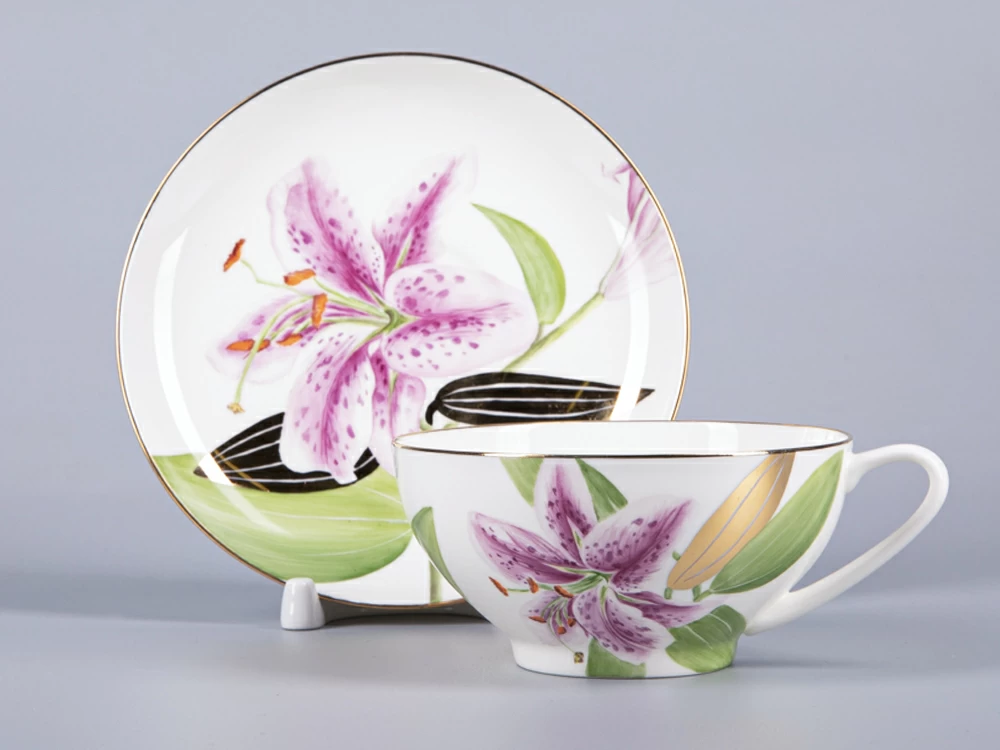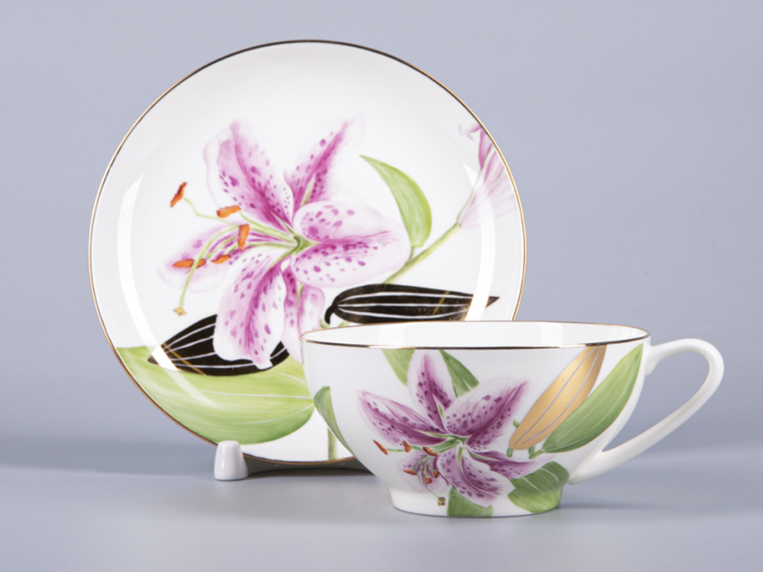 Чашка с блюдцем чайная 300мл, форма Купольная, рисунок Лилии, арт 81.29655.00.1