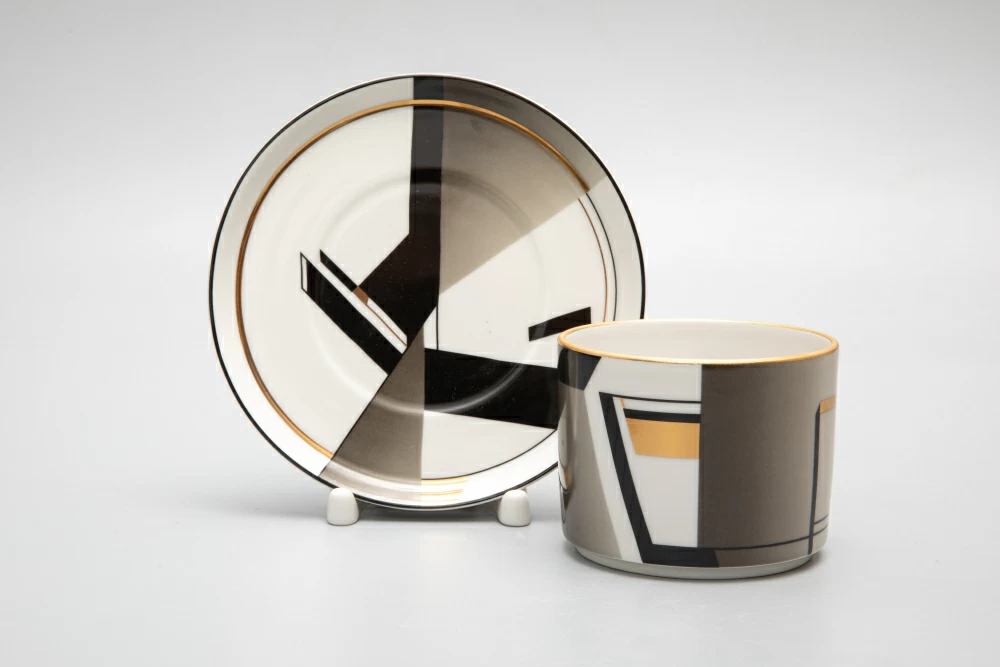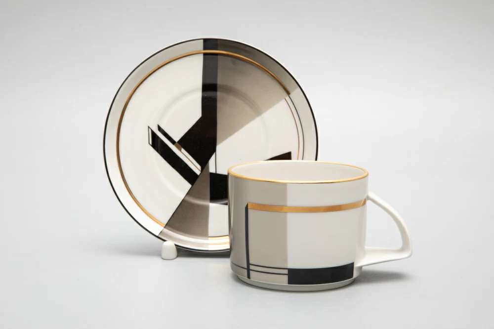Формы «Молодежная» и «Баланс» подчеркивает рисунок, разработанный современным художником Императорского фарфорового завода Верой Бакастовой. Сочетание черного и серого цветов с золотом отсылают к любимым у последователей bauhaus материалам: коже, дереву и металлу. Линии поражают своей выверенностью, а треугольники являются логическим продолжением формы ручек чашек, чайника и сахарницы.