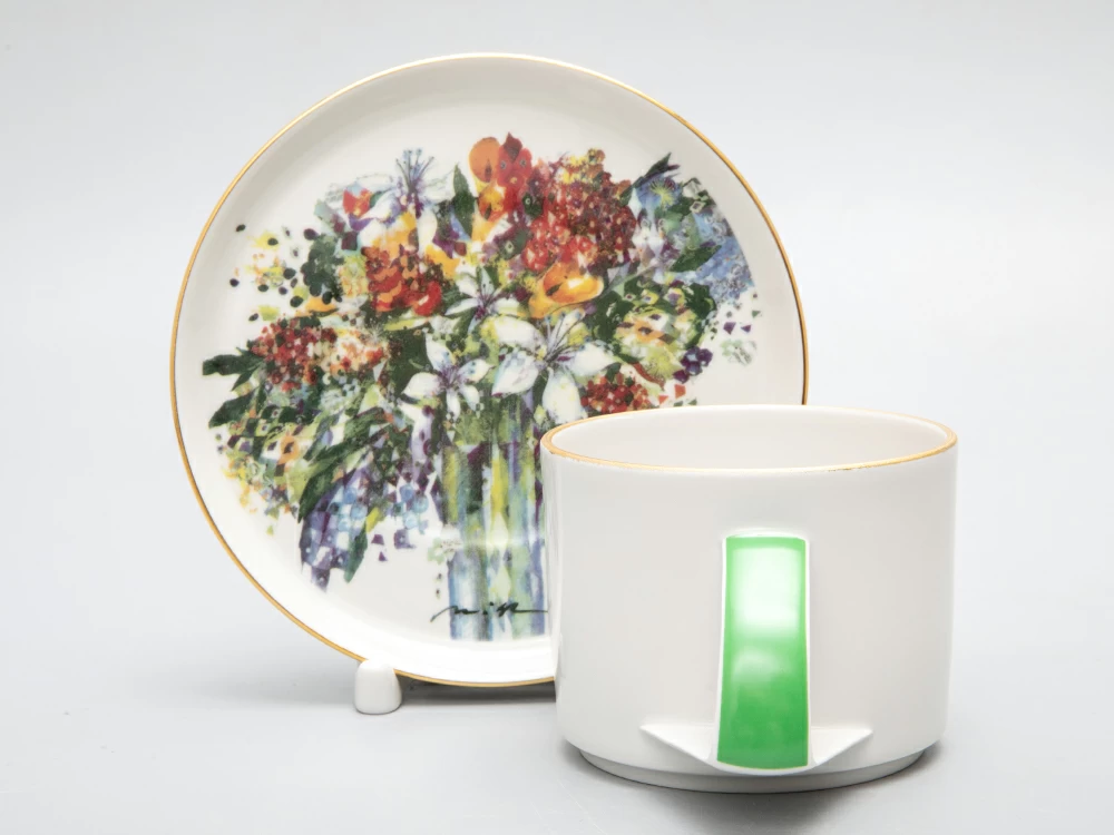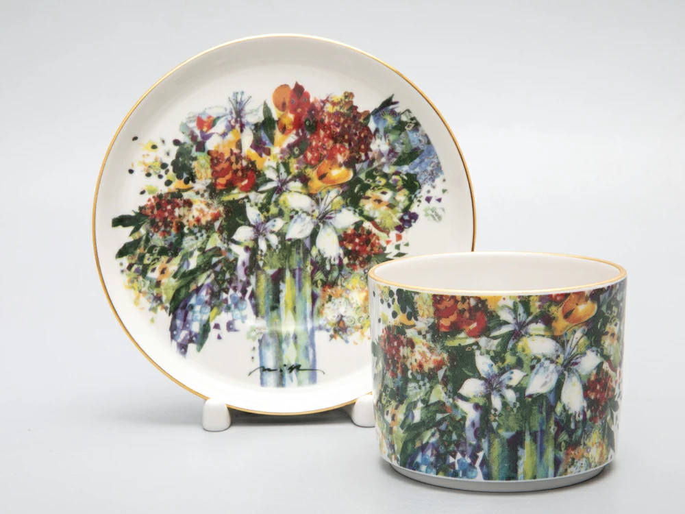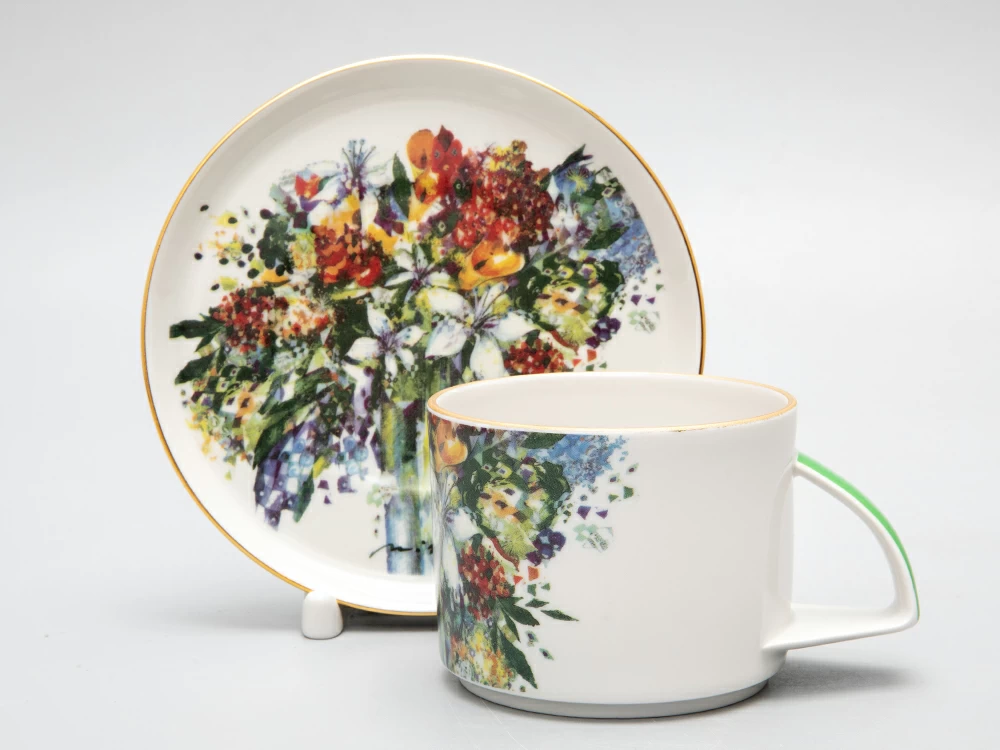 Чайная пара Весенний букет/Spring Bouquet изготовлена на Императорском фарфоровом заводе из твердого фарфора