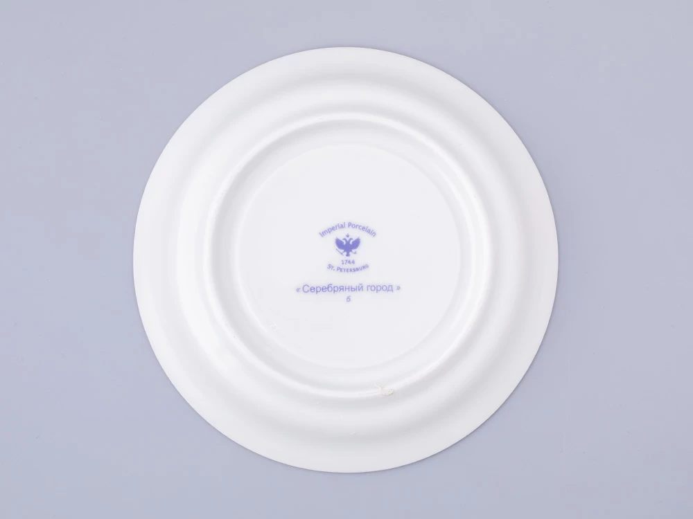 «Серебряный город» продолжает обширную коллекцию «Императорского фарфора», посвященную красоте и величию Петербурга. Художник Светлана Козлобродова представляет свой взгляд на красоту и эстетику города в период белых ночей. На каждом из предметов изображен определенный архитектурный памятник Санкт-Петербурга. Композицию дополняет ритмичный узор, повторяющий «чугунное кружево», обрамляющее Санкт-Петербург: решетки и ограды мостов и набережных. Приглушенная палитра красок и использование платины в декоре передает настроение безмятежного покоя.