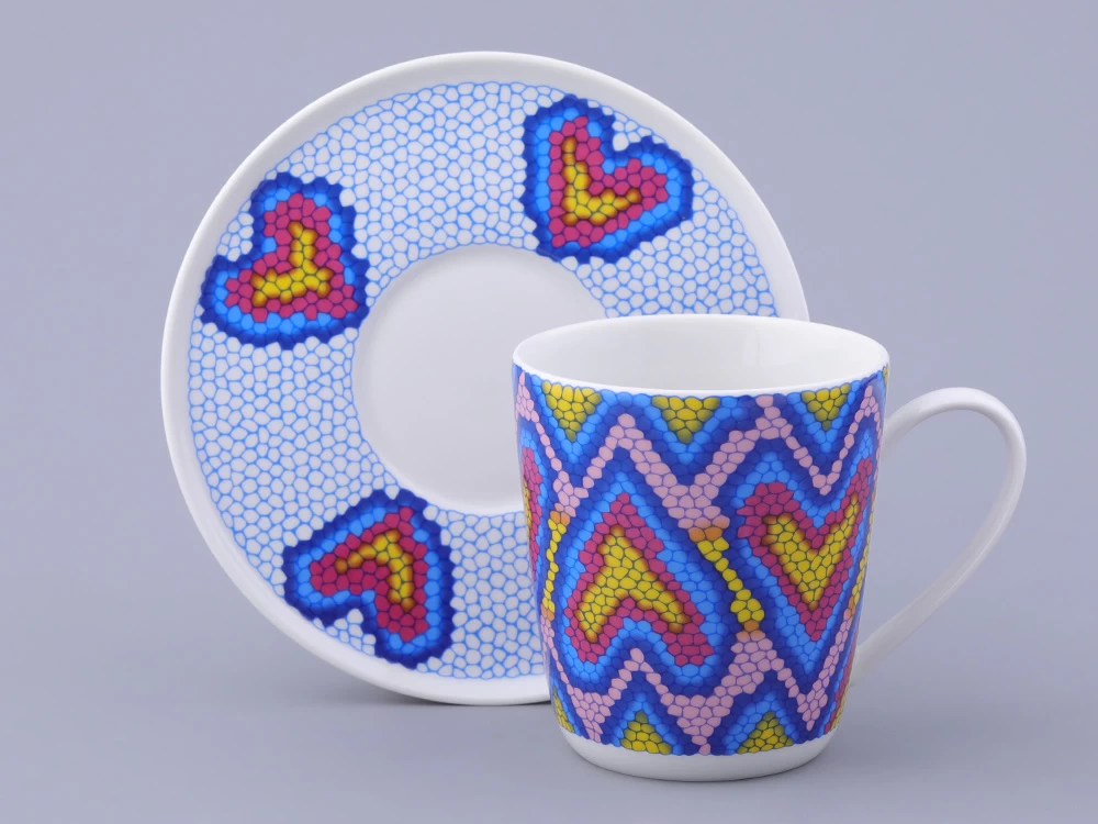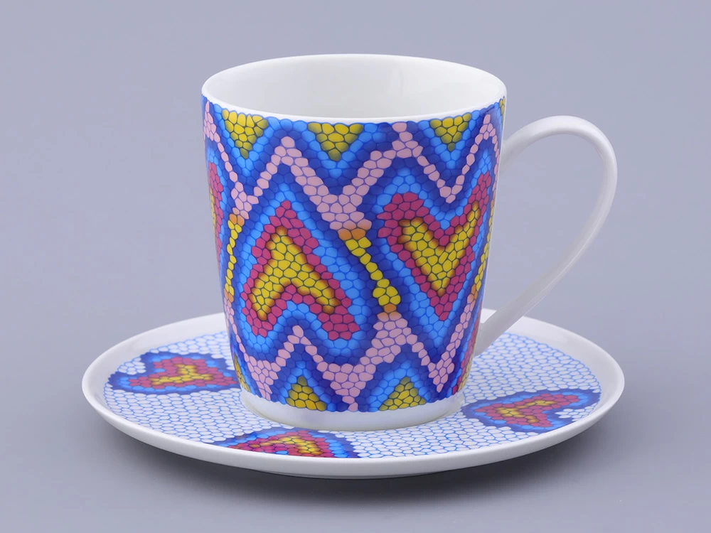Чашка с блюдцем чайная, форма Колокол, рисунок Боа радужный, арт. 81.32688.00.1