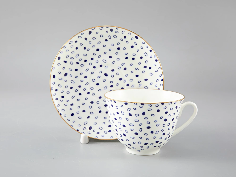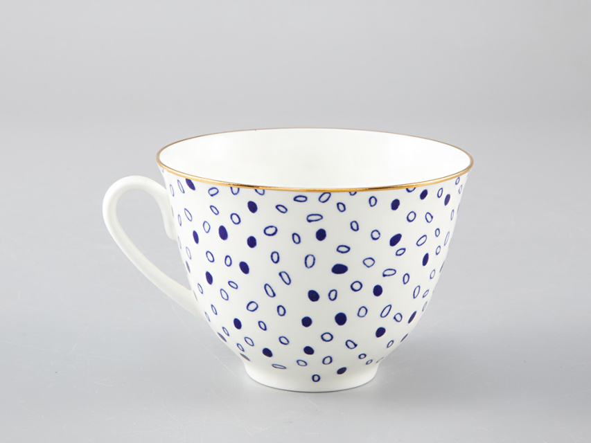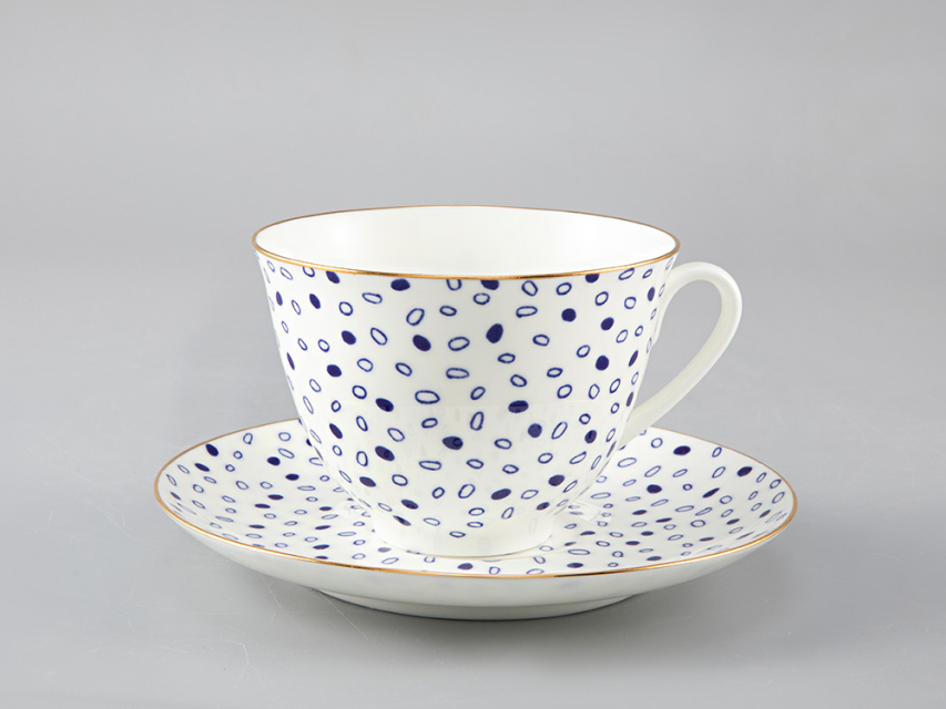 Серия чайных чашек с блюдцами «Настроение» продолжает одноименную кофейную серию. Изделия выполнены из тонкостенного костяного фарфора высокого качества и украшены золотой отводкой.