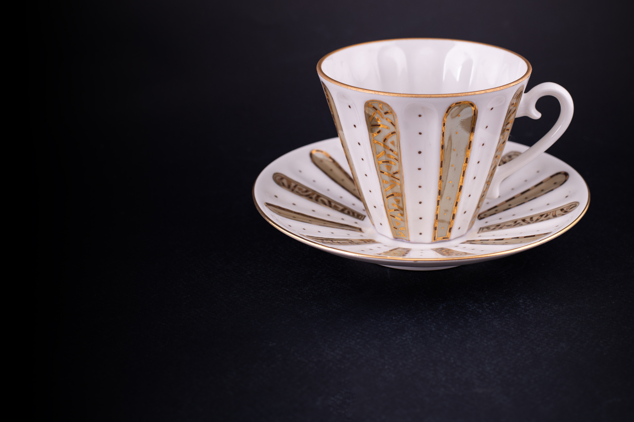 Чашка с блюдцем изготовлена на Императорском фарфоровом заводе из твердого фарфора