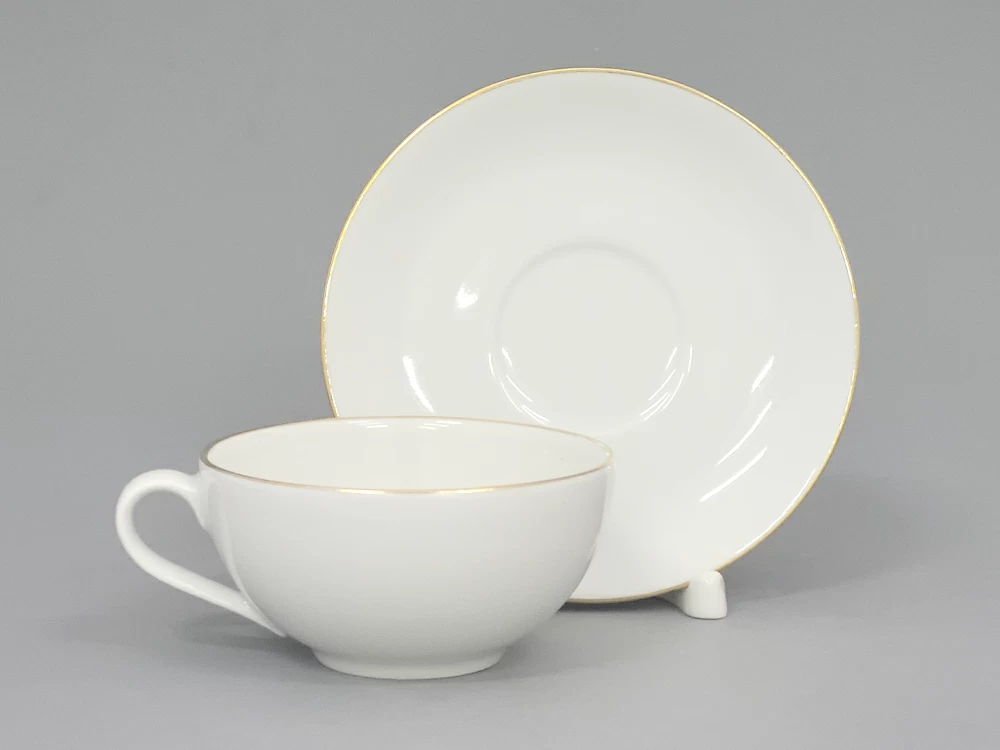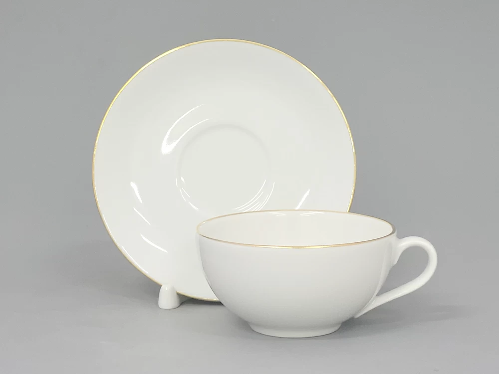 Чашка с блюдцем изготовлена на Императорском фарфоровом заводе из твердого фарфора