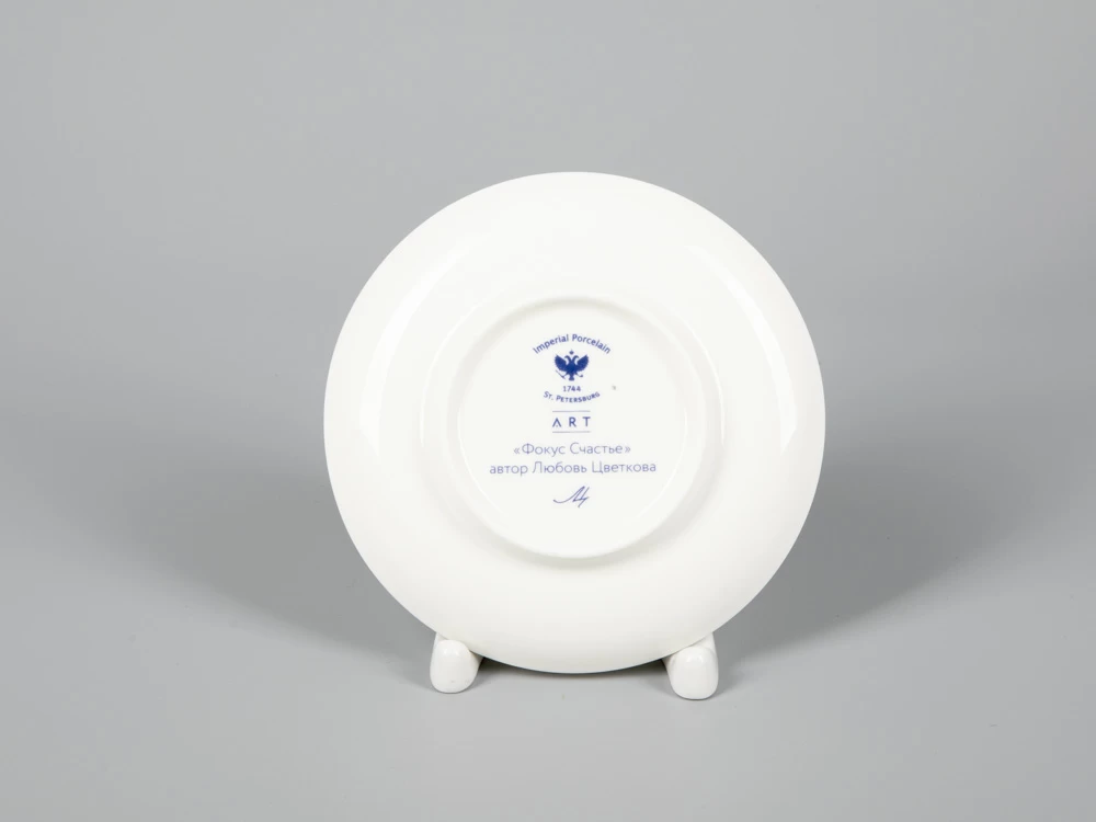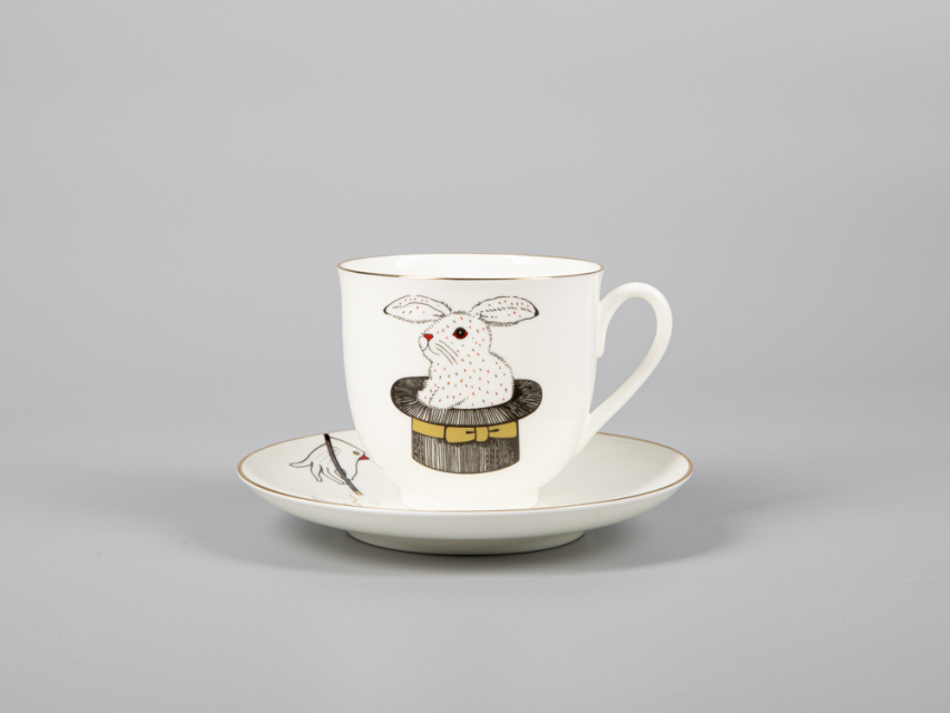 К новогодней коллекции художник Л.Ю. Цветкова исполнила два кофейных комплекта с символом 2023 года. Данная кофейная пара украшена стилизованным изображением кролика, выглядывающего из цилиндра фокусника, и пожеланием счастья. Рисунок выполнен с необыкновенным изяществом, дополнительно подчеркивая элегантность формы и воздушность фарфора. Такой подарок очарует как взрослых, так и самых юных ценителей «белого золота», станет добрым пожеланием в наступающем году. Серия кофейных пар также представлена комплектом «Удача».
