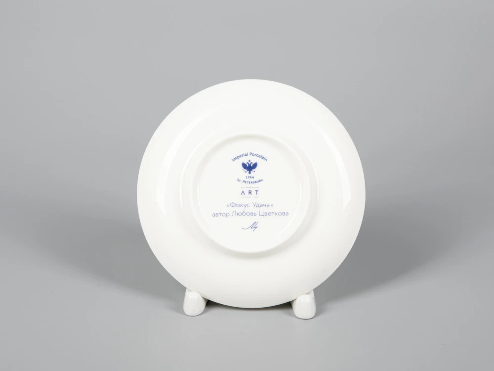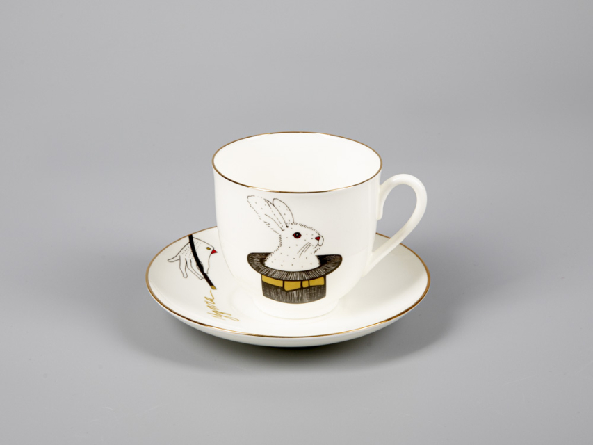 К новогодней коллекции художник Л.Ю. Цветкова исполнила два кофейных комплекта с символом 2023 года. Данная кофейная пара украшена стилизованным изображением кролика, выглядывающего из цилиндра фокусника, и пожеланием удачи. Рисунок выполнен с необыкновенным изяществом, дополнительно подчеркивая элегантность формы и воздушность фарфора. Такой подарок очарует как взрослых, так и самых юных ценителей «белого золота», станет добрым пожеланием в наступающем году. Серия кофейных пар также представлена комплектом «Счастье».