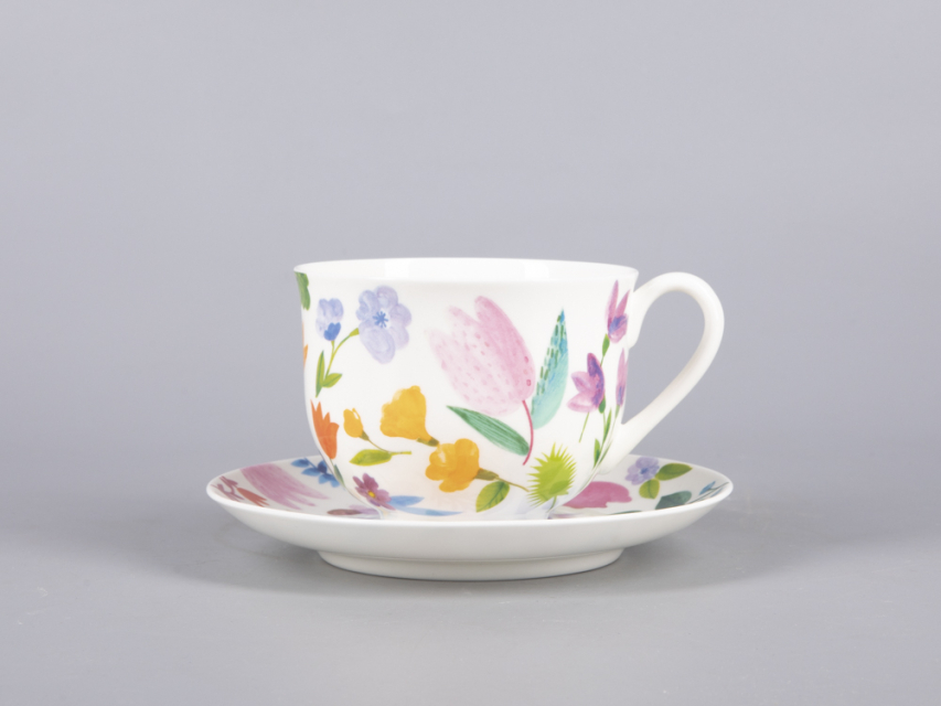 Чашка с блюдцем чайная 345 мл форма Ландыш рисунок Primavera арт. 81.30808.00.1