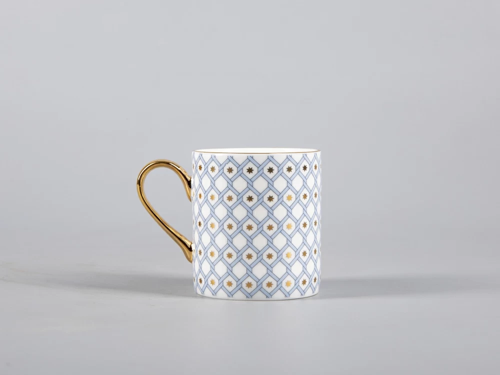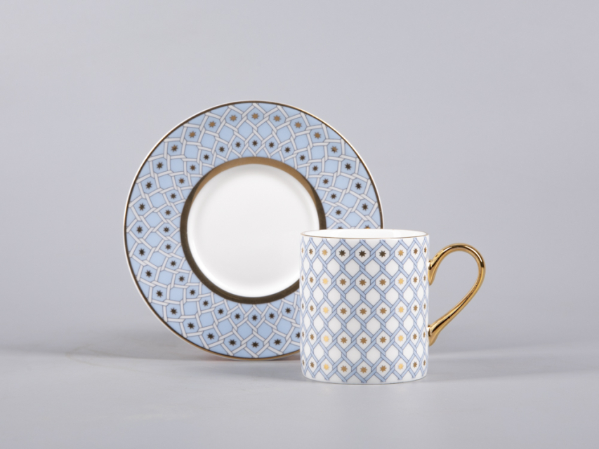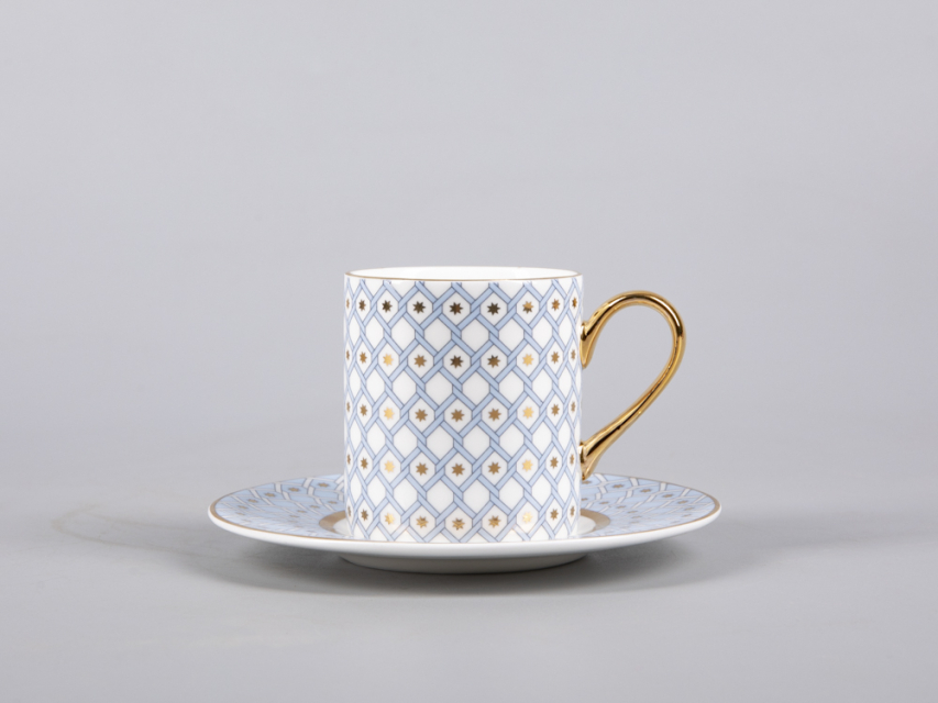 Кофейная пара «Азур» - одна из самых ожидаемых новинок 2022 года, выполнена в традиционном для коллекции декоре, представляющим собой современную вариацию на тему знаменитой росписи Императорского фарфорового завода «Кобальтовая сетка». Ее прототипом в свою очередь, является Собственный сервиз Елизаветы Петровны середины XVIII века. Строгий геометрический декор, задающий основной ритм, художник Юлия Чистякова смягчает мягкими заливками цвета и золотыми акцентами. Объем чашки идеально подойдет для любителей эспрессо и сделает утреннюю чашечку кофе одним из любимых ритуалов дня.