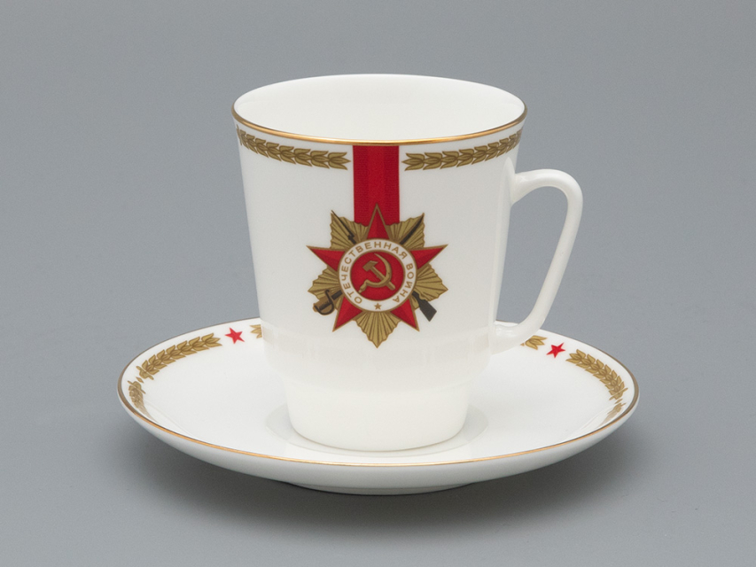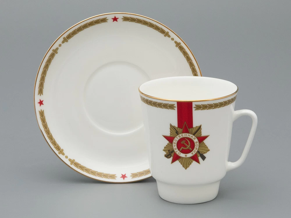 Кофейная пара станет незабываемым подарком для ценителей исторического наследия, любителей эксклюзивного фарфора и всех, кто бережно сохраняет память о героическом прошлом нашей страны.