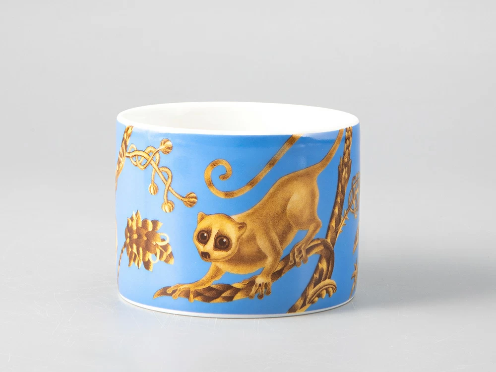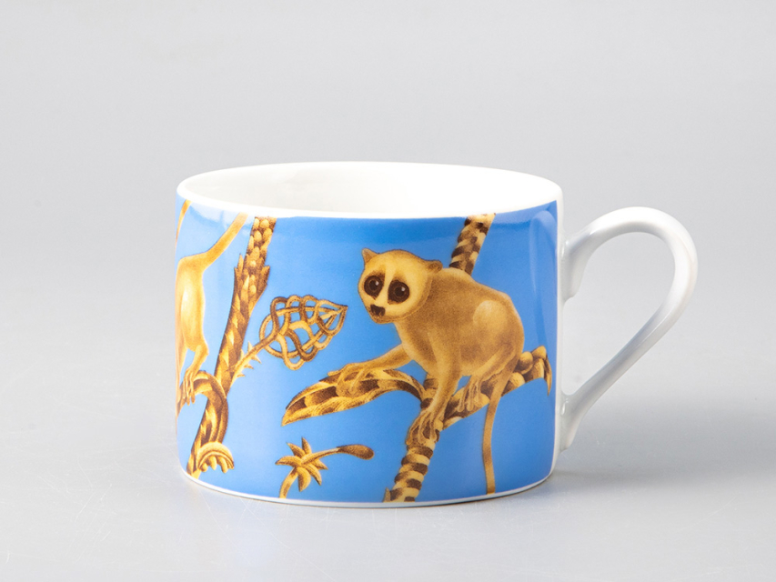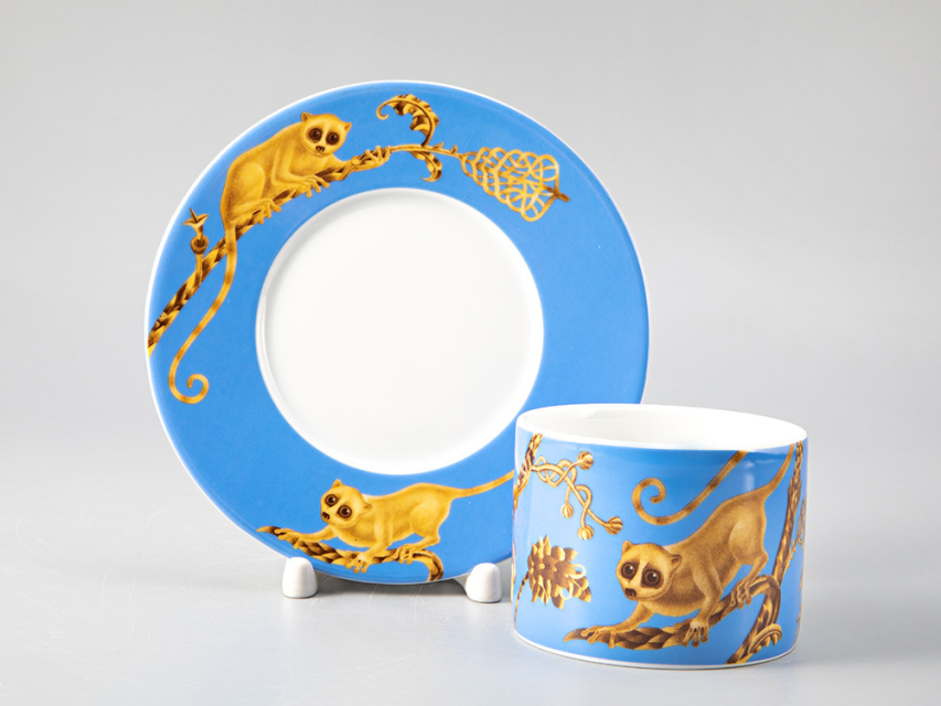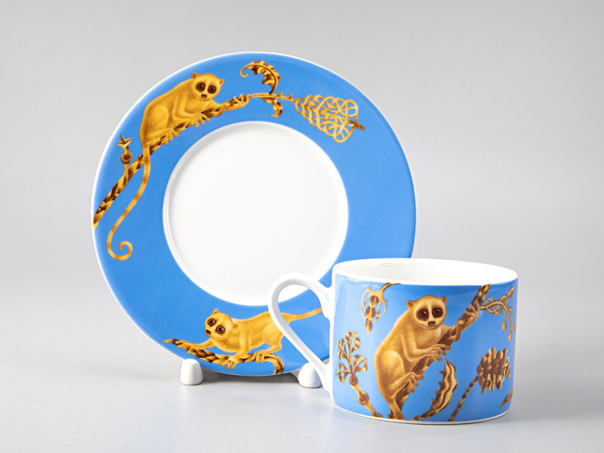 Kirill Ovchinnikov – это российский бренд, под которым выпускаются шелковые платки, посуда, одежда, ювелирные изделия, кафельная плитка, фарфор, обои и многое другое. Художник Кирилл Овчинников разрабатывает декор, который одинаково выигрышно смотрится как на крупных интерьерных объектах, так и на камерных предметах. В коллаборации с Императорским фарфоровым заводом были разработаны туалетные коробочки и чайные пары с одной из наиболее востребованных композиций автора. Изделия украшает изображение лемура – небольшого примата, обитающего на Мадагаскаре.
