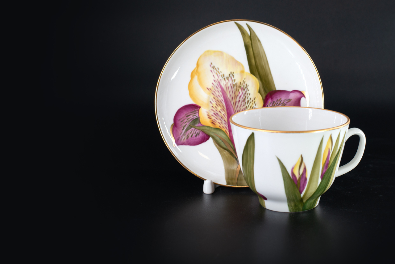 Чашка с блюдцем изготовлена из твердого фарфора на Императорском фарфоровом заводе
