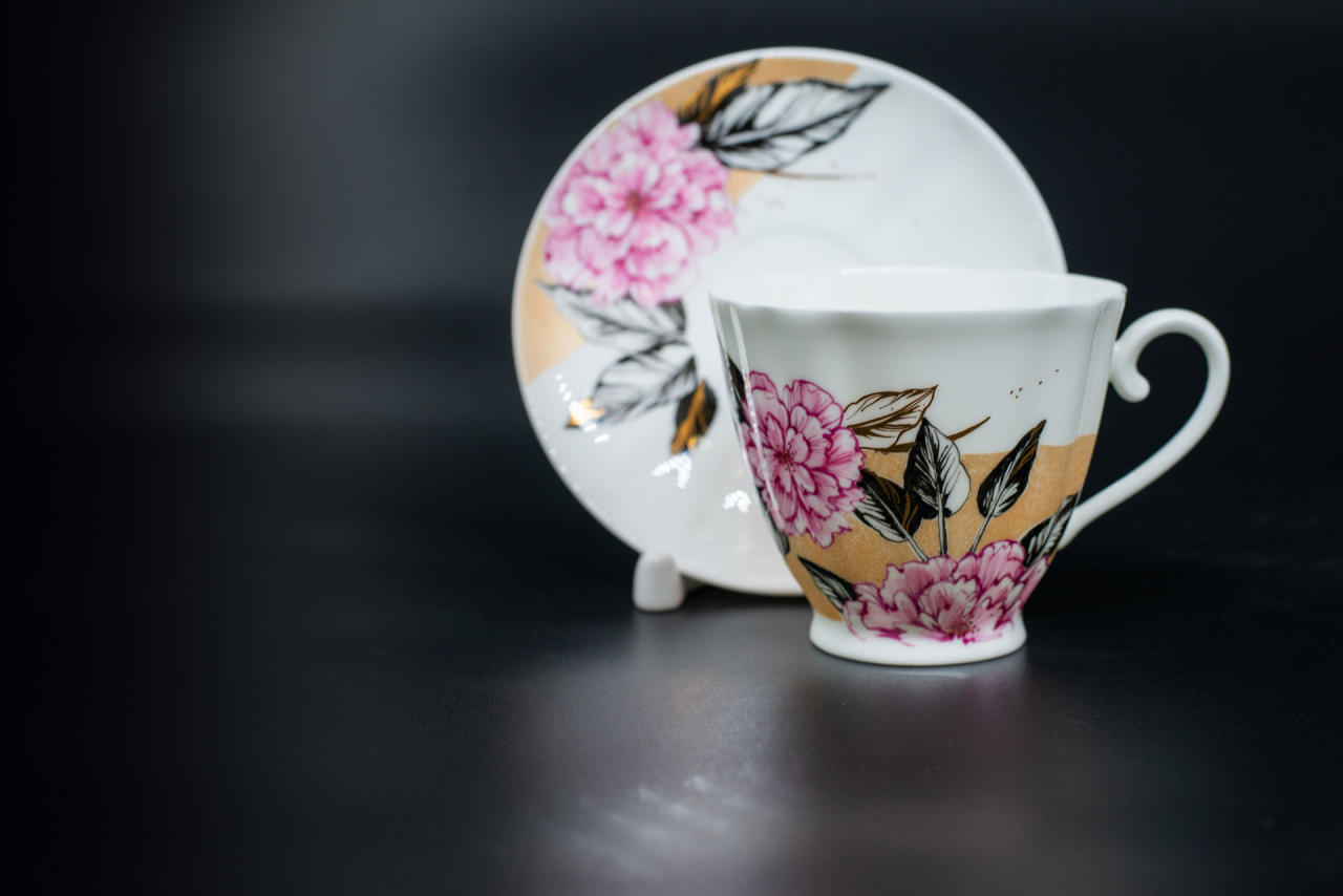 Чашка с блюдцем изготовлена на Императорском фарфоровом заводе из костяного фарфора