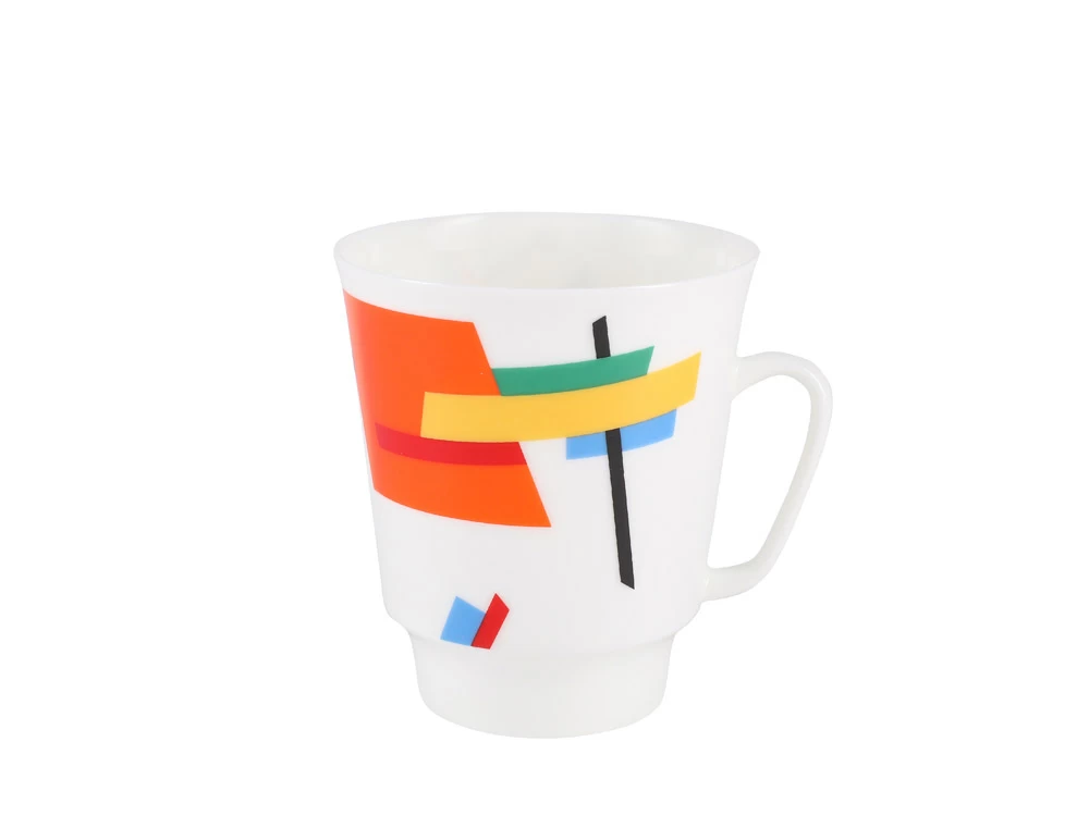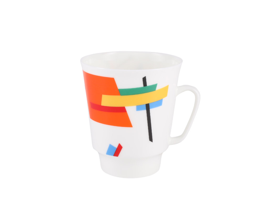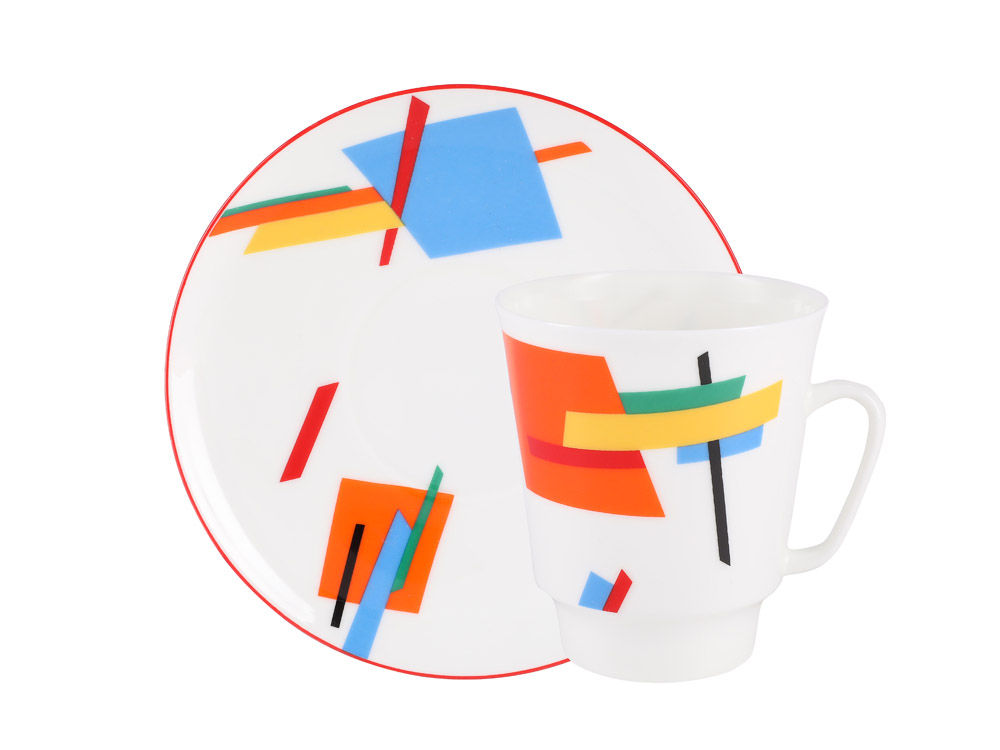 Белизна фарфора и его сверкающая чистота воспринимались художниками-супрематистами во главе с Казимиром Малевичем как некое абсолютное, молчаливое пространство, которое хочет заговорить. И в 1920-х гг. фарфор «заговорил» на их языке – простыми геометрическими фигурами контрастных цветов, динамично несущимися в межзвездном пространстве, либо застывшими планетными системами. Несмотря на всю парадоксальность и некоторую односторонность живописных приемов супрематистов, до них проблемы цвета и фактуры в фарфоре никогда не были так блестяще разработаны.