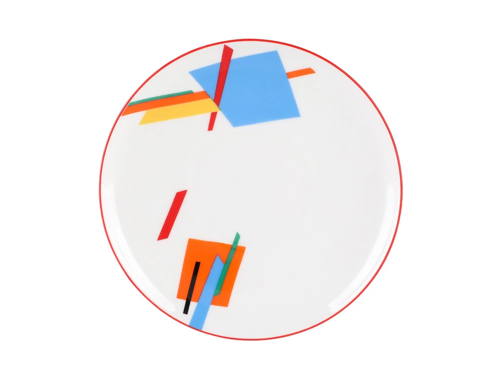 Декор коллекции "Движение" разработан современным художником Императорского фарфорового завода Верой Бакастовой в супрематической традиции. На поверхности фарфора автор строит абстрактные геометрические композиции из разнообразных по форме объектов ярких чистых цветов.