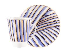 Серия чашек с блюдцами «Настроение» исполнена из тонкостенного костяного фарфора. Коллекция выполнена в монохромной цветовой гамме. Строгие геометрические линии смягчает свободный стиль исполнения. Изделия украшены золотой отводкой.