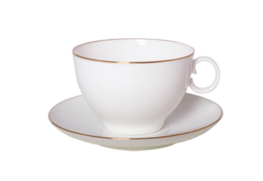 Чашка с блюдцем чайная рис. Золотой кант изготовлена на Императорском фарфоровом заводе из костяного фарфора с отводкой золотом вручную. Автор формы - Линчевская Т.С. Объем изделия - 160 мл.