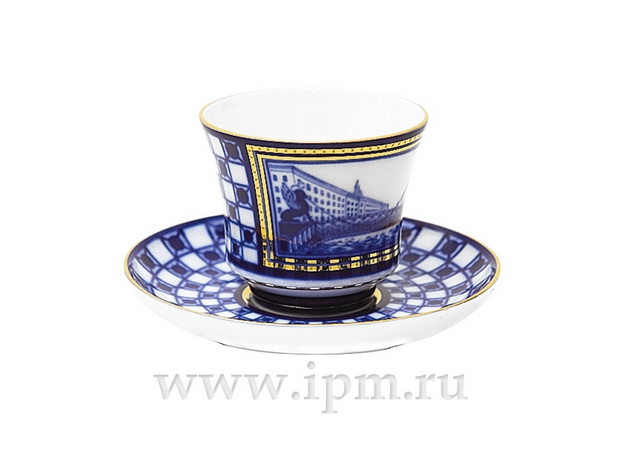Чашка с блюдцем чайная рис. Банковский мостик изготовлена на Императорском фарфоровом заводе из твердого фарфора с элементами ручной росписи. Автор рисунка - Шуляк Г.Д. Объем изделия - 220 мл.