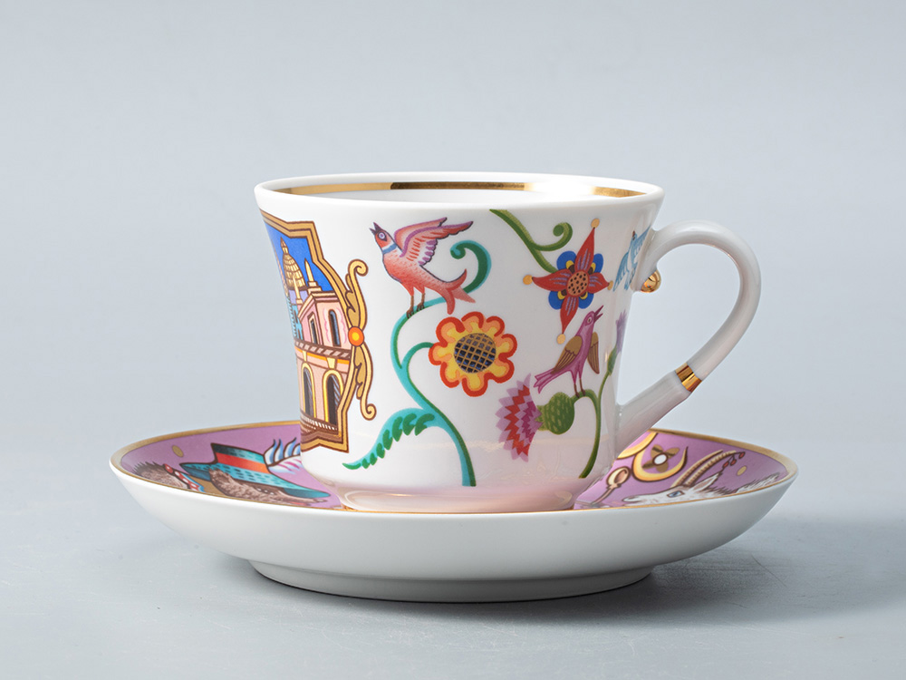Вдохновением для создания красочной коллекции «Чудоград» стало русское искусство допетровского времени, в частности, Нарышкинское (Московское) барокко с характерным для него узорочьем. Стилевое решение декора отсылает к традиции русского лубка и книжных миниатюр. На предметах сервиза «выросли» нарядные дома в окружении диковинных птиц и эффектных золотых акцентов.