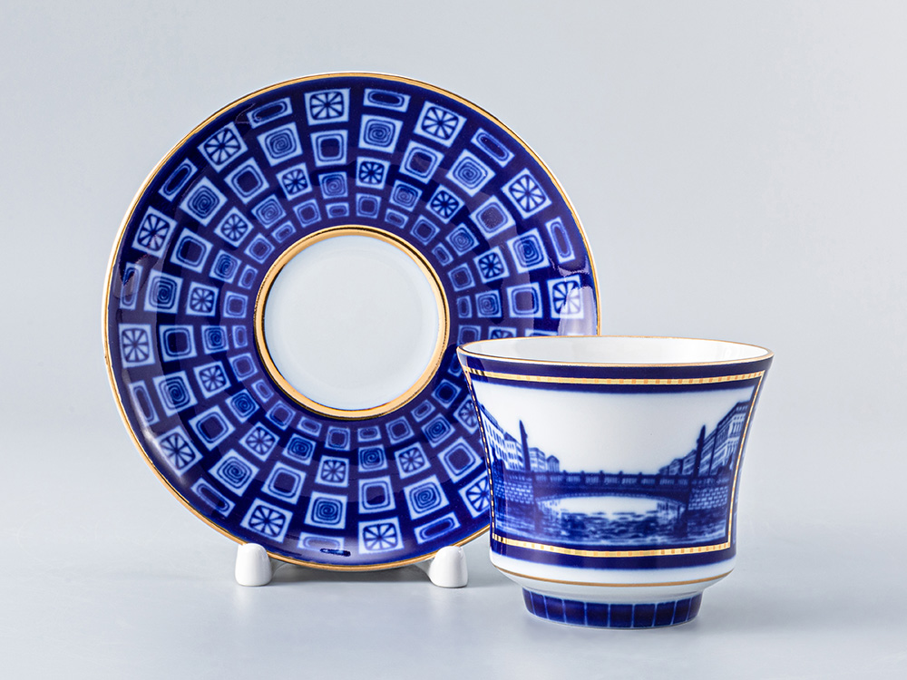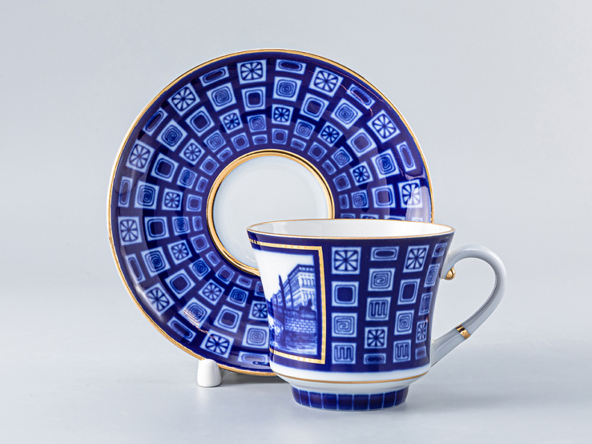 Чашка с блюдцем чайная рис. Египетский мост изготовлена на Императорском фарфоровом заводе из твердого фарфора с элементами ручной росписи. Автор рисунка - Шуляк Г.Д. Объем изделия - 220 мл.