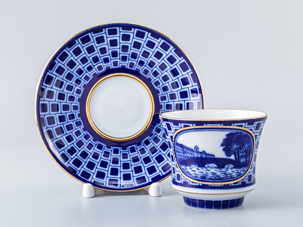 Чашка с блюдцем чайная рис. Прачечный мостик изготовлена на Императорском фарфоровом заводе из твердого фарфора с элементами ручной росписи. Автор рисунка - Шуляк Г.Д. Объем изделия - 220 мл.