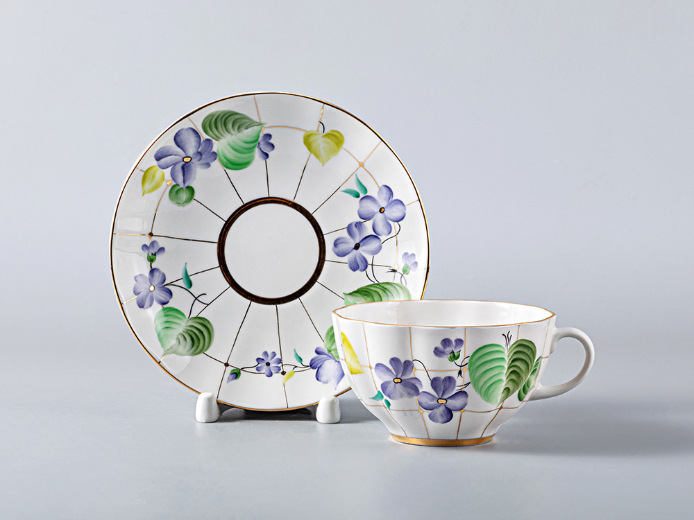 Чайная чашка с блюдцем «Лесная фиалка» на форме «Тюльпан».