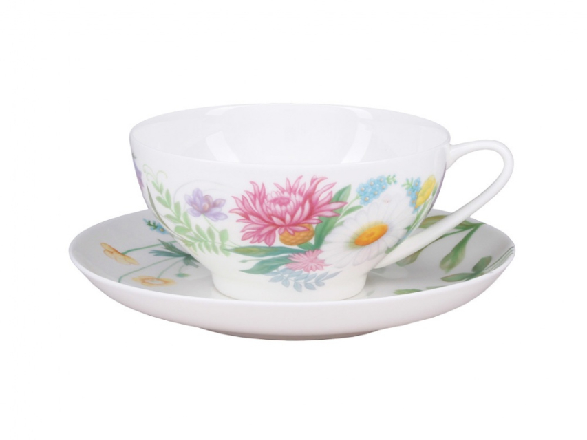Чашка с блюдцем чайная 300 мл форма Купольная рисунок Полевые цветы №2 арт. 81.23108.00.1