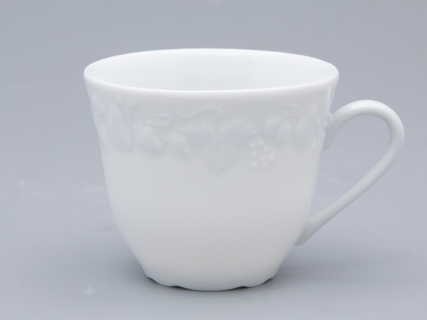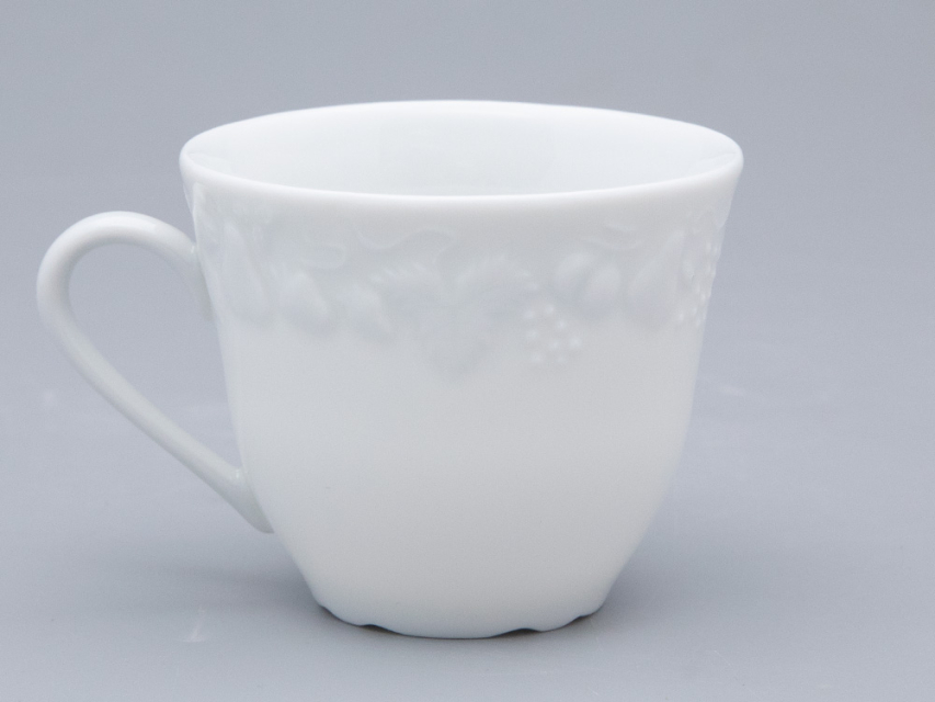 Чашка с блюдцем чайная ф. Калифорния изготовлена на французском заводе Deshoulieres из твердого фарфора без росписи. Объем изделия - 210 мл.
