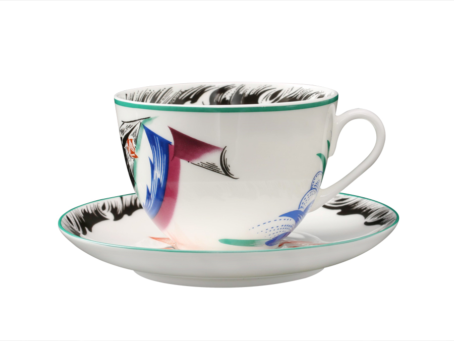 Роспись чашек с блюдцами «Красный флаг», «Молот и шестерня» на форме «Весенняя», воссозданных по оригиналам лучших образцов агитационного фарфора собрания Государственного Эрмитажа, пронизана темами, образностью, самобытностью, пластическими и живописными ассоциациями своего времени, ностальгией по культуре и духовной атмосфере старой России.