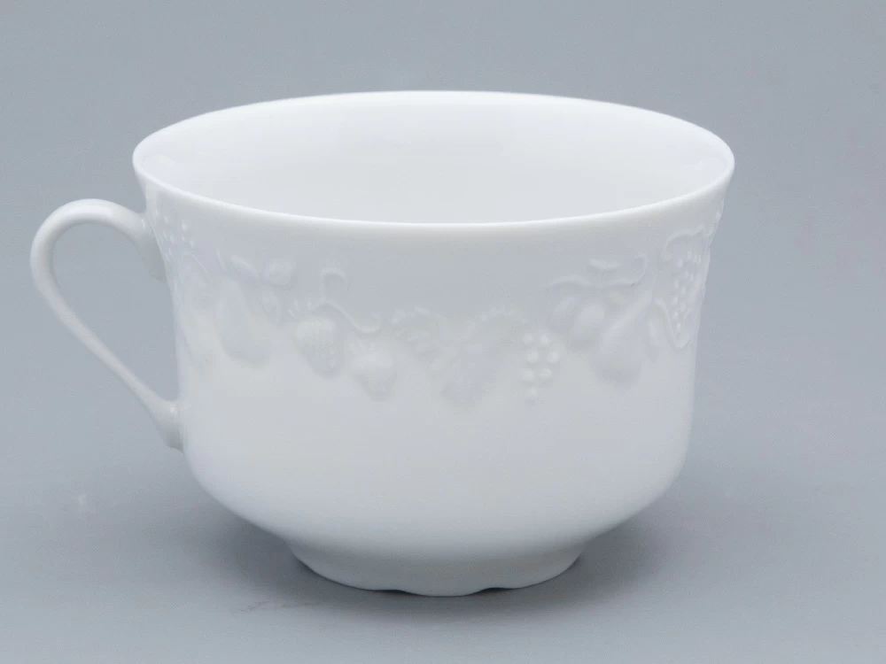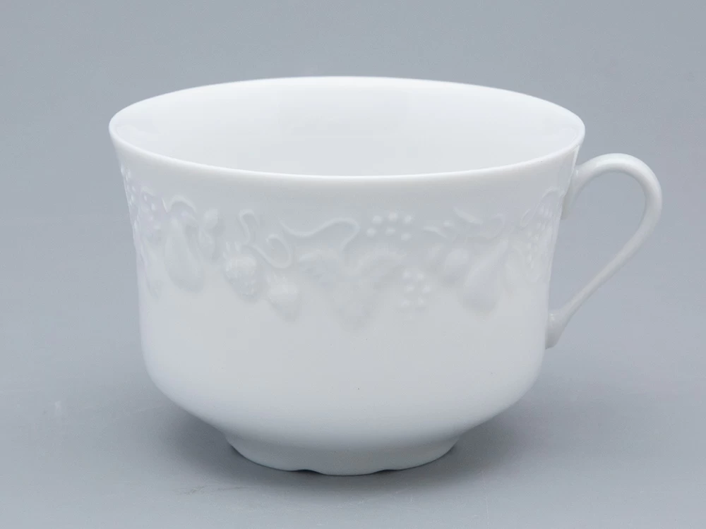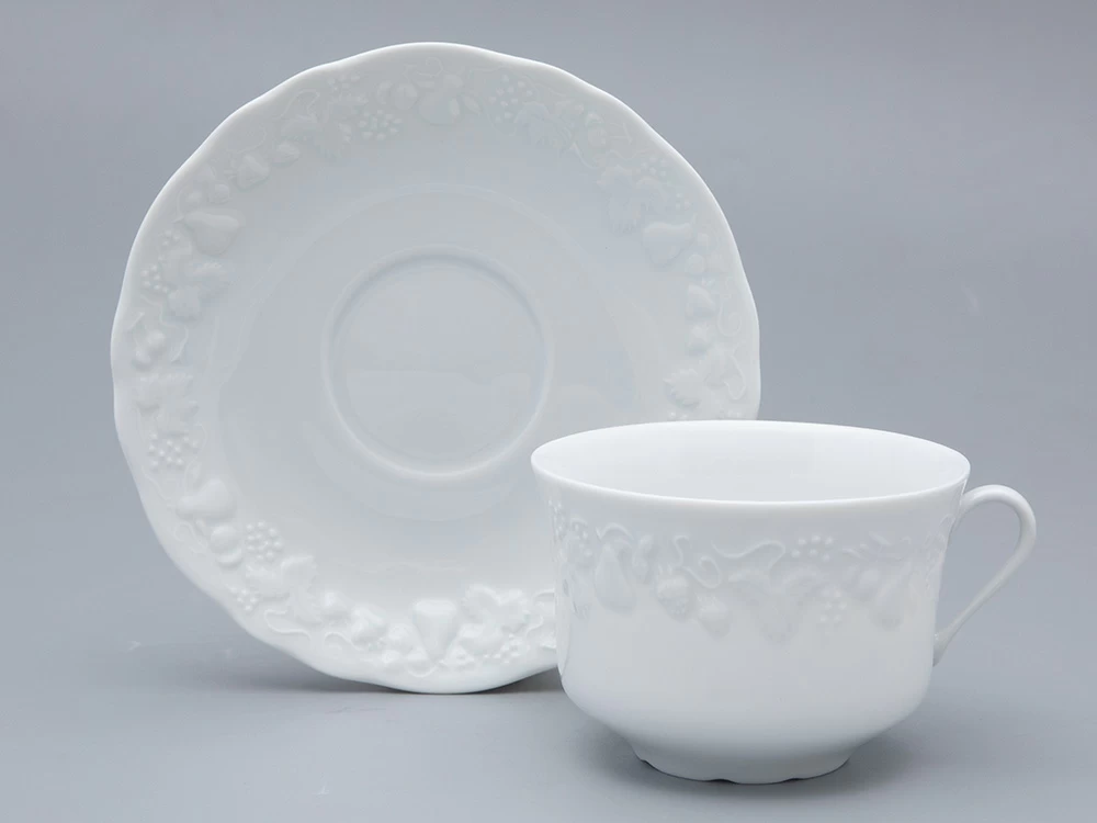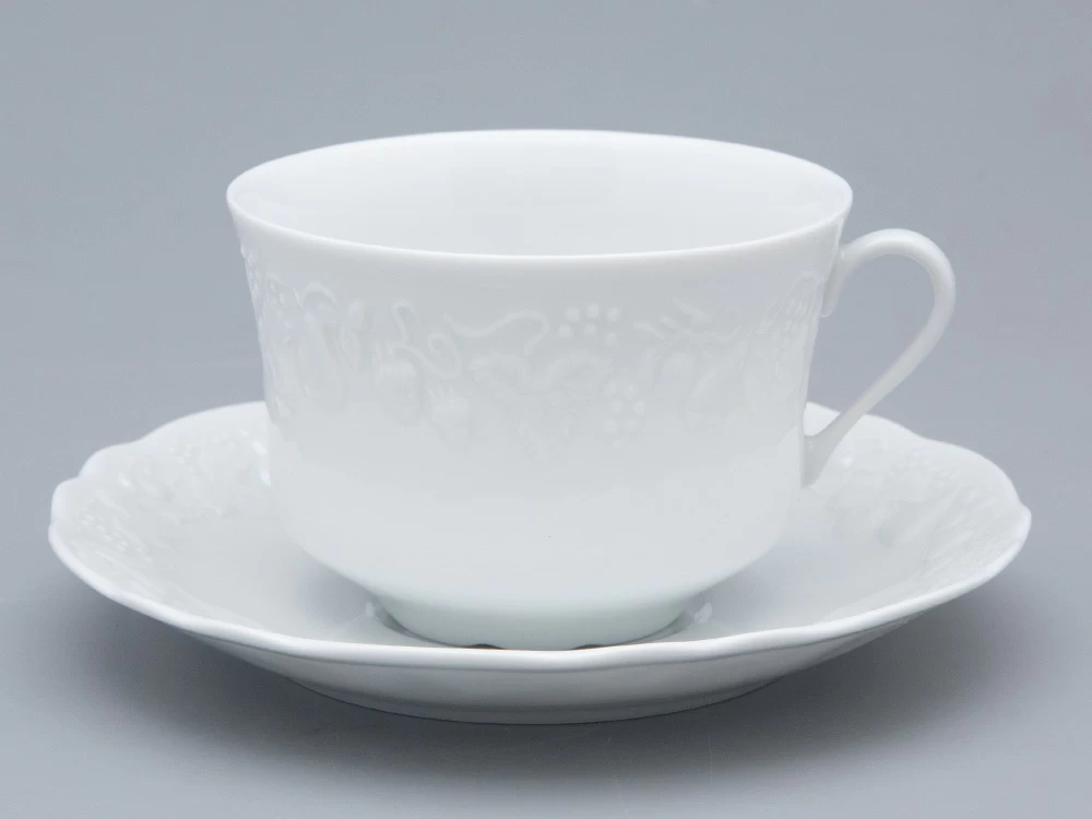 Чашка с блюдцем чайная ф. Калифорния изготовлена на французском заводе Deshoulieres из твердого фарфора без росписи. Объем изделия - 330 мл.