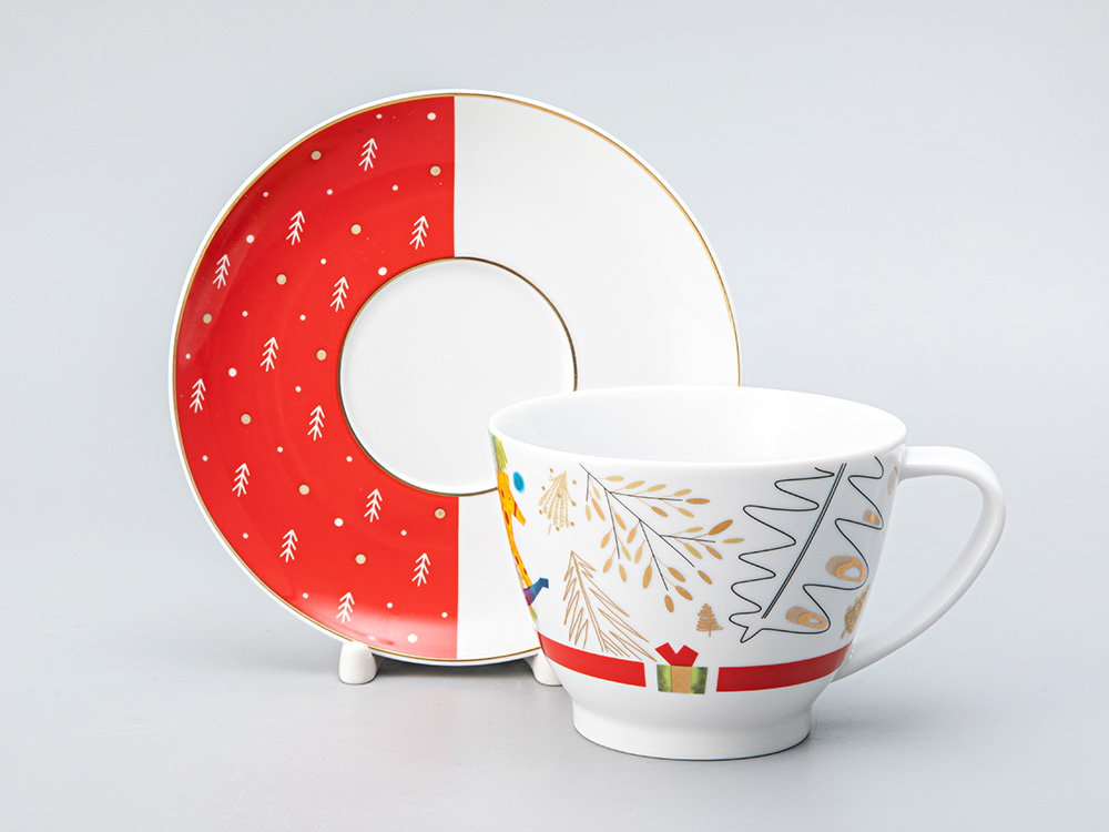 Чашка с блюдцем изготовлена на Императорском фарфоровом заводе из твердого фарфора. Для декорирования используется надглазурная деколь, отводка золотом. Яркие цвета, дополненные золотом, создадут праздничное настроение, а обращение к персонажу сказки Эрнста Теодора Амадея Гофмана, на протяжении двух столетий остающейся главной рождественской книгой, сделает комплект вневременной классикой для украшения стола. Выпуск изделия начался в 2021 году. Объем чашки - 350 мл, высота - 8.5 см.