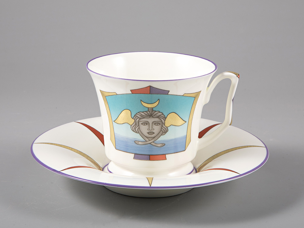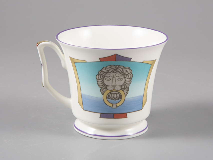 Санкт-Петербург – одна из ведущих тем творчества художника Татьяны Афанасьевой. В чайном сервизе, посвященном Северной столице, автор обращается к изображению видов города и достопримечательностей: сфинксов на Университетской набережной на фоне Исаакиевского собора, Медного всадника, Петропавловской крепости, масок львов на стрелке Васильевского острова и др. Роспись декоративна и созерцательна, спокойна и гармонична – словно призрачный мир, где графические композиции воспринимаются как декорации к воображаемой пьесе, разворачивающейся в городе на Неве.