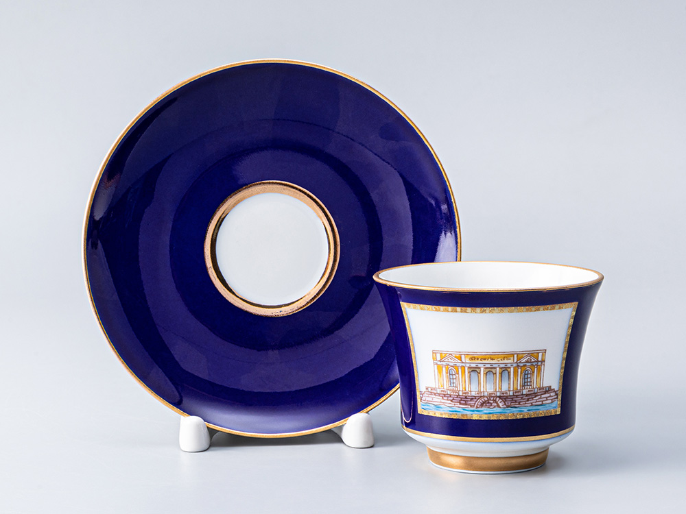 Чашка с блюдцем кофейная рис. Классика Петербурга 2 изготовлена на Императорском фарфоровом заводе из твердого фарфора с элементами ручной росписи. Автор рисунка - Шуляк Г.Д. Объем изделия - 145 мл.