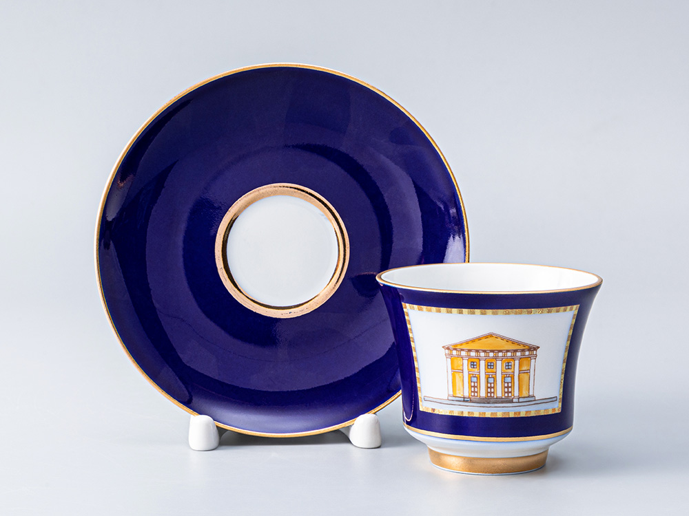 Чашка с блюдцем кофейная рис. Классика Петербурга 5 изготовлена на Императорском фарфоровом заводе из твердого фарфора с элементами ручной росписи. Автор рисунка - Шуляк Г.Д. Объем изделия - 145 мл.
