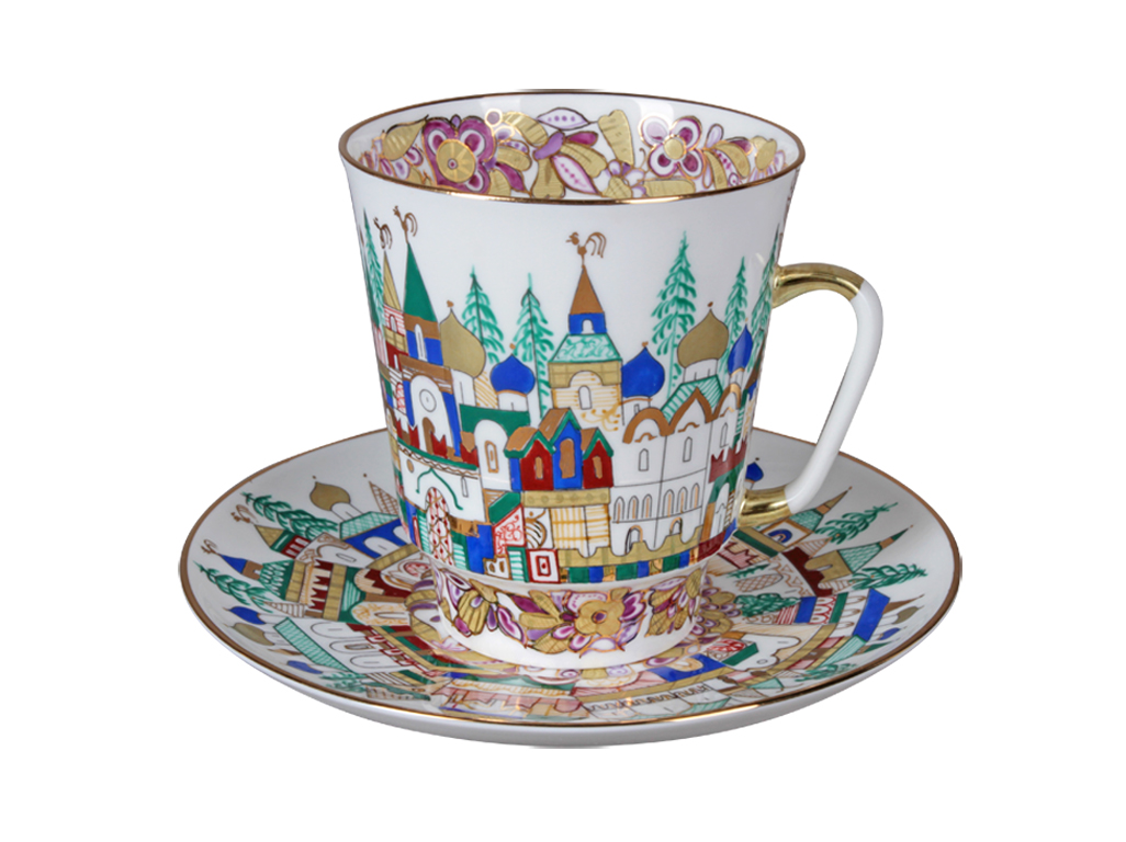Чашка с блюдцем кофейная рис. Старинная Россия изготовлена на Императорском фарфоровом заводе из костяного фарфора с применением только ручной росписи. Автор рисунка - Воробьевский А.В. Объем изделия - 165 мл.