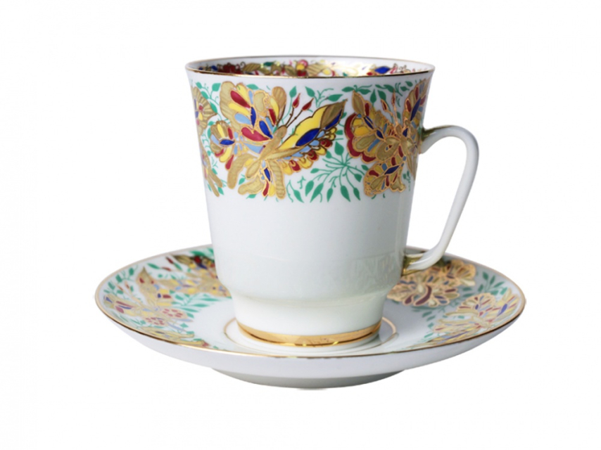 Чашка с блюдцем кофейная рис. Пестрые бабочки изготовлена на Императорском фарфоровом заводе из костяного фарфора с применением только ручной росписи. Автор рисунка - Воробьевский А.В. Объем изделия - 165 мл.