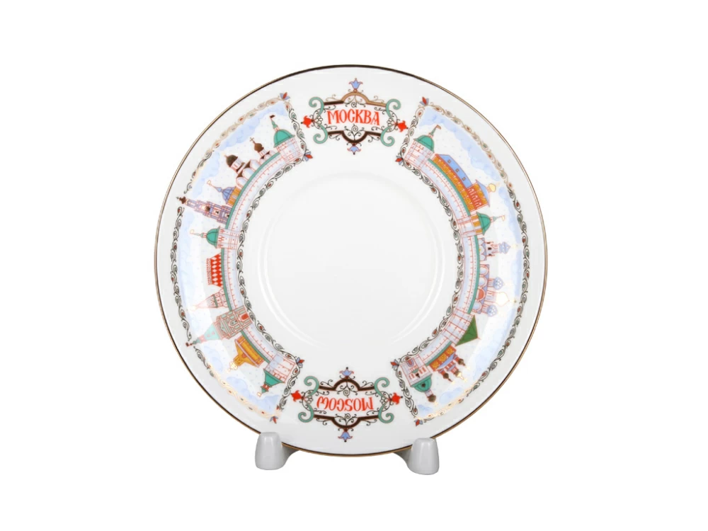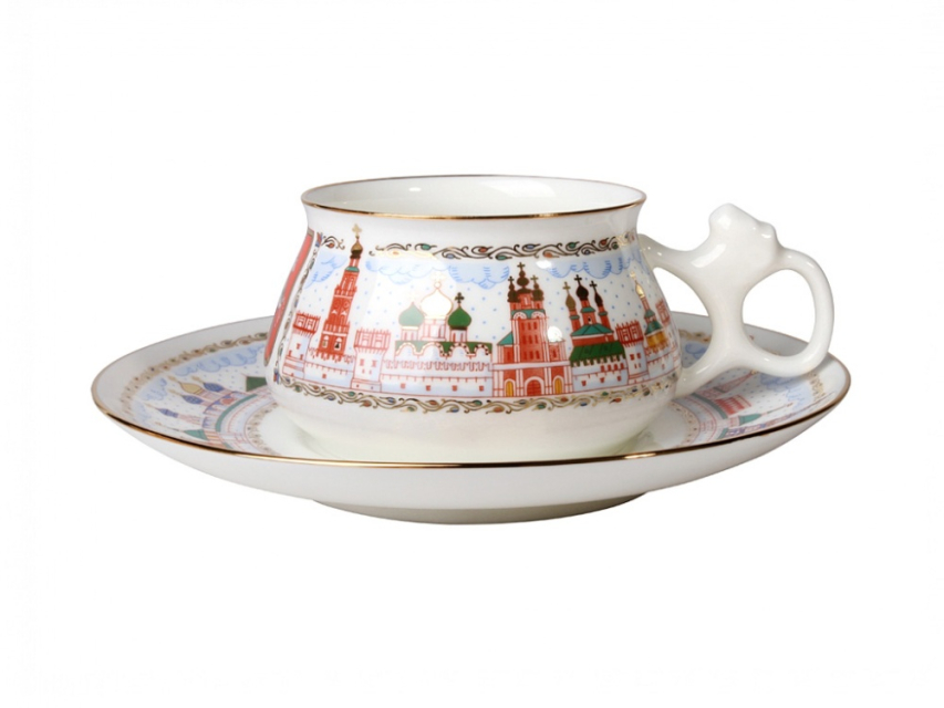 Чашка чайная с блюдцем «Москва златоглавая» на форме «Билибина» - прекрасный памятный сувенир для любителей фарфора.