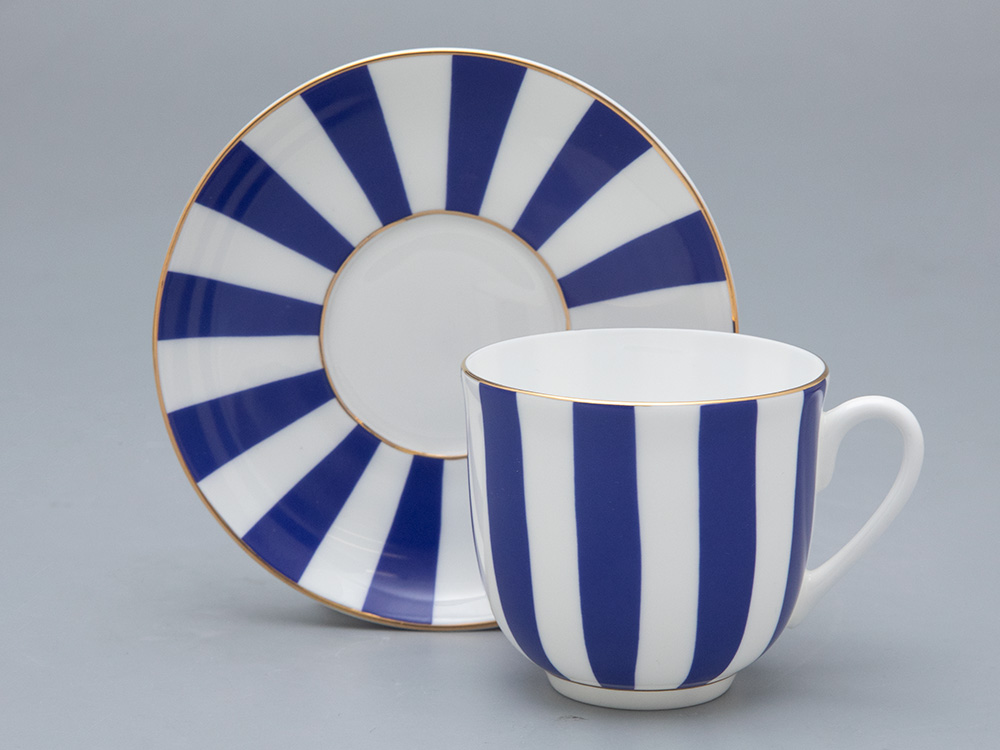 Чашка с блюдцем кофейная рис. Да и нет (кобальт) изготовлена на Императорском фарфоровом заводе из костяного фарфора с элементами ручной росписи. Автор рисунка - Соколов С.Н. Объем изделия - 180 мл.