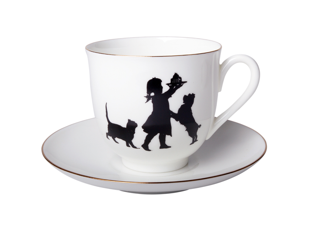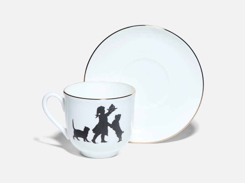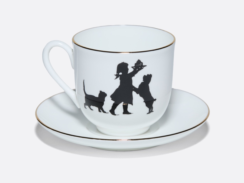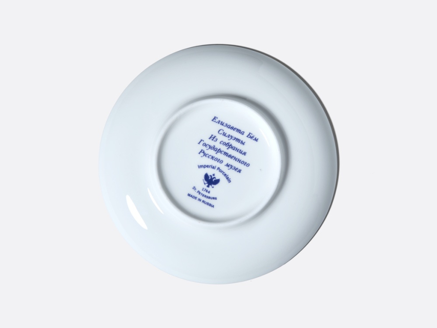 Традиции отечественного искусства силуэта восходят к временам императрицы Екатерины Великой. В это время силуэтное искусство становится элементом дворянской культуры. В эпоху романтизма художники стали наносить изящные абрисы на фарфор и хрусталь, украшали силуэтами множество различных предметов. Возрождение этого жанра и большой интерес к искусству создания силуэтов в конце XIX – начале XX вв. связаны с именем художницы Елизаветы Бем (1843-1914), имя которой было широко известно в России на рубеже веков. Едва ли не самым значительным, талантливым, остроумным и оригинальным изданием, по мнению известного критика В. В. Стасова, стала выпущенная художницей книга «Силуэты из жизни детей», рисунки из которой и составили коллекцию чашек из костяного тонкостенного фарфора. Белоснежная поверхность фарфора органично приняла на себя мастерски исполненные, трепетные и душевные картинки из мира детства, возродив на фарфоре образцы подлинного искусства. Рисунки Е. Бем из коллекции Государственного Русского музея.