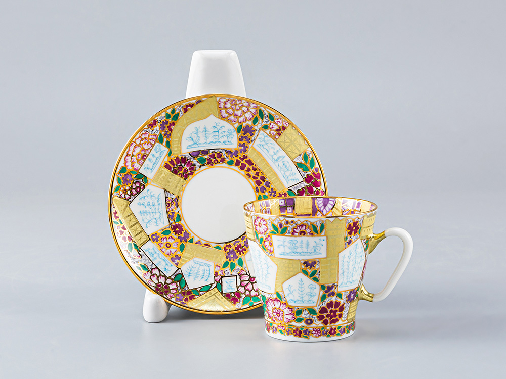 Чашка с блюдцем изготовлена на Императорском фарфоровом заводе (г. Санкт-Петербург) из тонкостенного костяного фарфора. Для декорирования используется ручная надглазурная роспись.