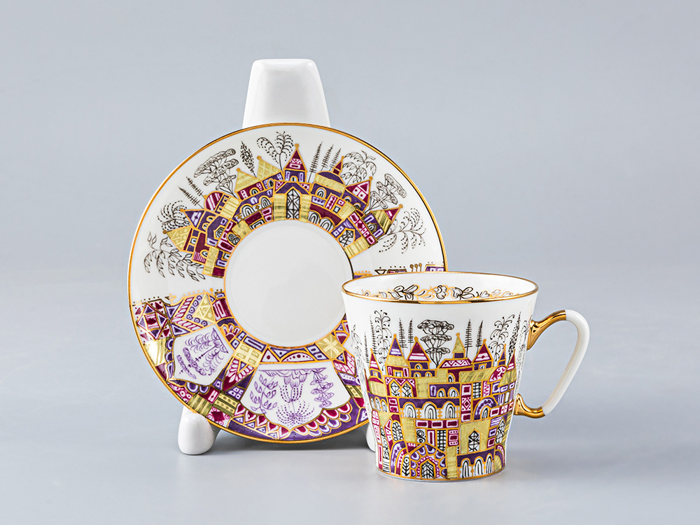 Чашка с блюдцем изготовлена на Императорском фарфоровом заводе (г. Санкт-Петербург) из тонкостенного костяного фарфора. Для декорирования используется ручная надглазурная роспись.