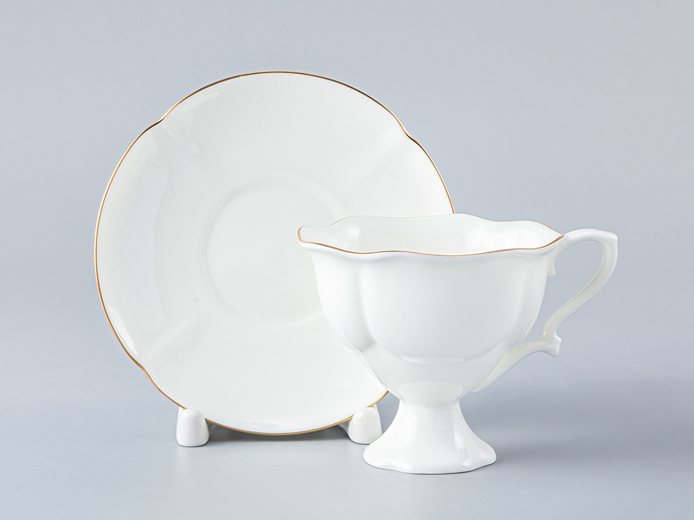 Изделие с рисунком "Золотая лента" изготовлено на Императорском фарфоровом заводе из костяного фарфора. Изысканная отводка, нанесенная натуральным золотом, деликатно обыгрывает белоснежную поверхность изделий, дополняет легкий, светлый образ, подчеркивает хрупкость материала, изящную форму предметов.