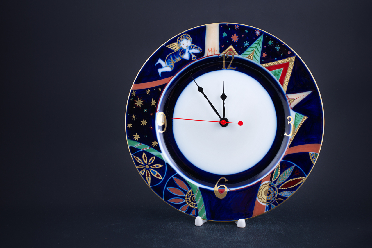 Тарелка-часы изготовлена на Императорском фарфоровом заводе из твердого фарфора