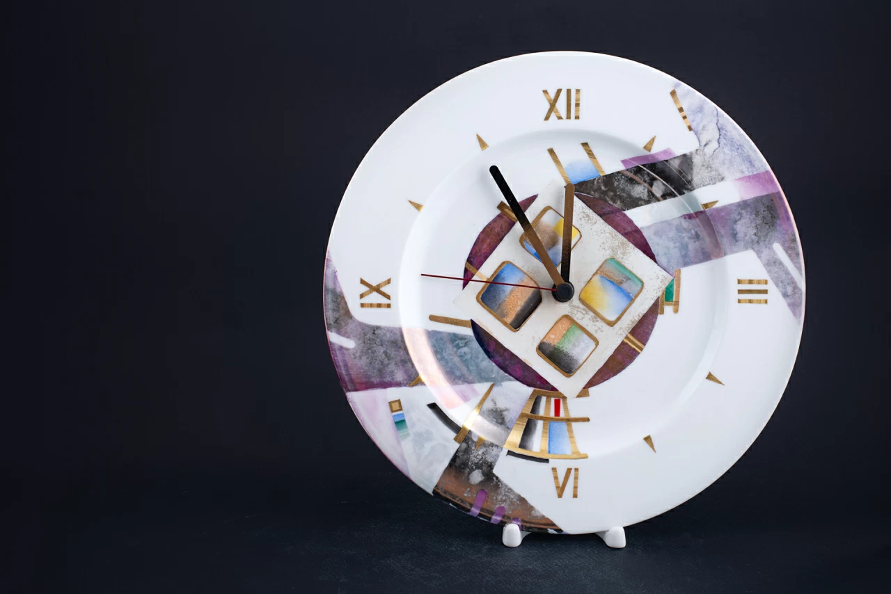 Тарелка-часы изготовлена на Императорском фарфоровом заводе из твердого фарфора