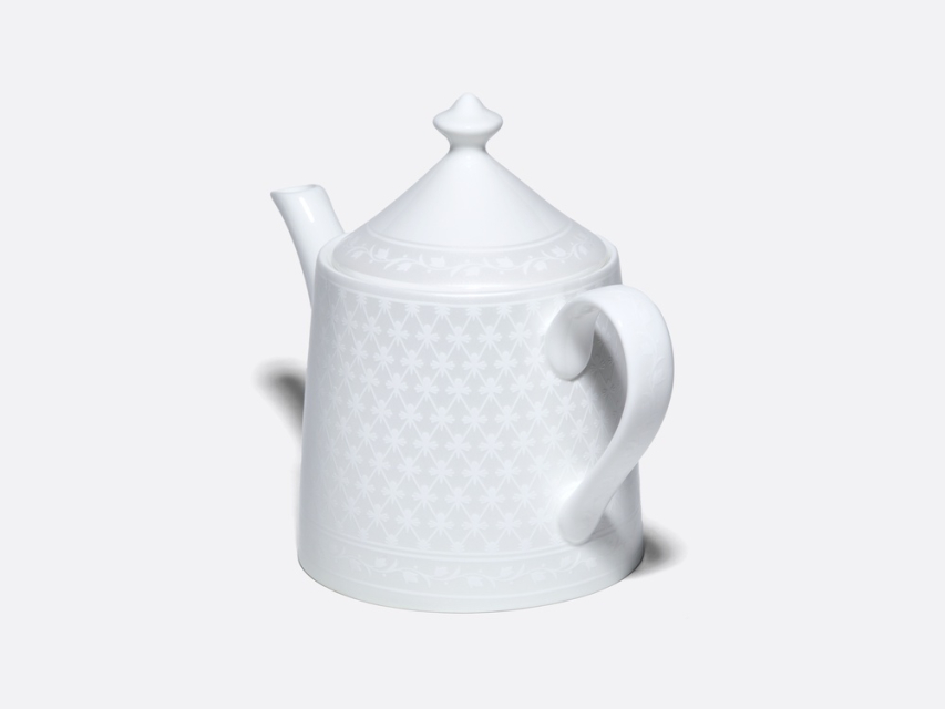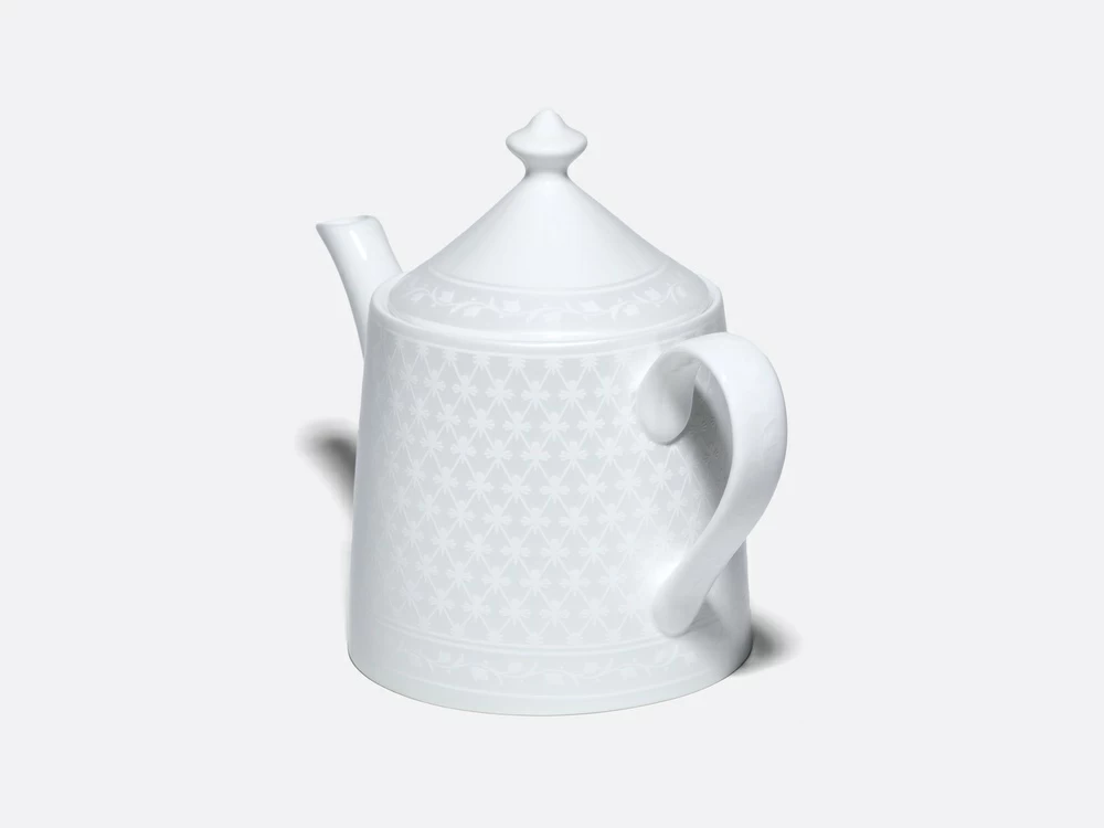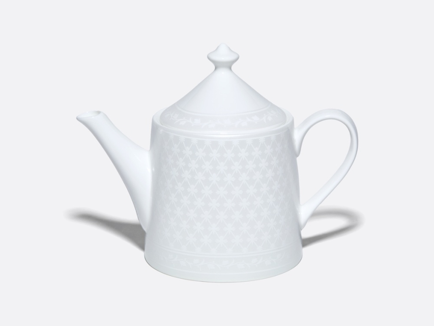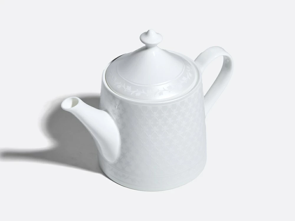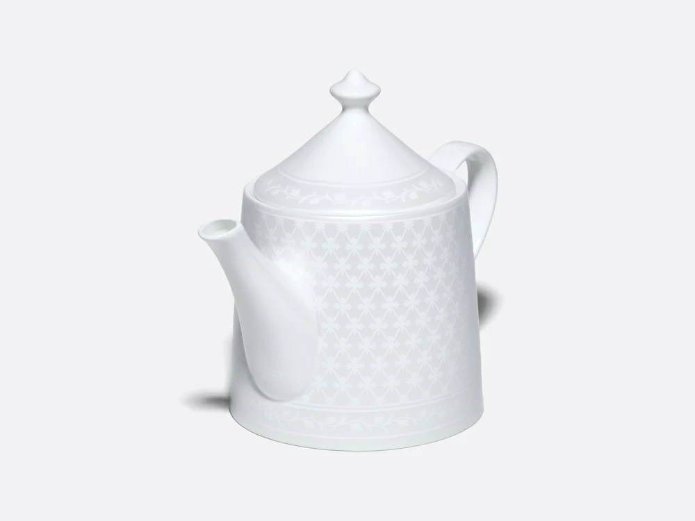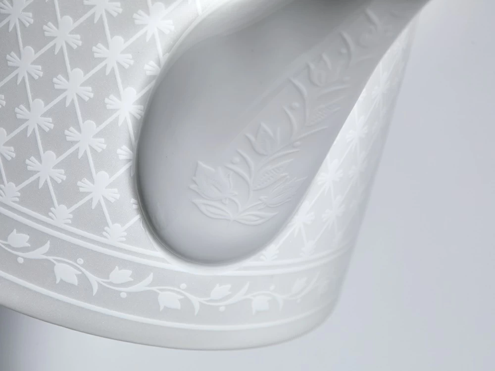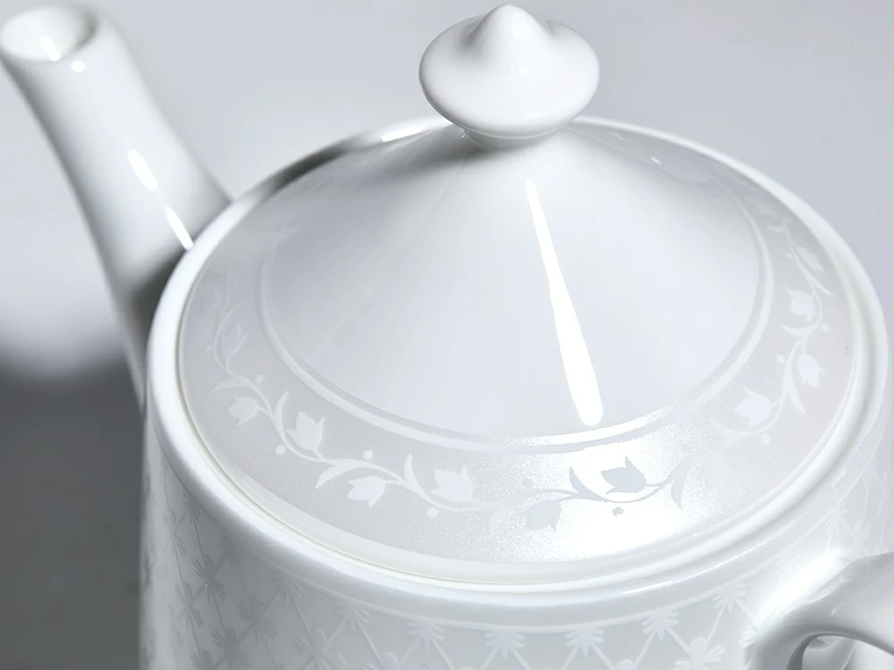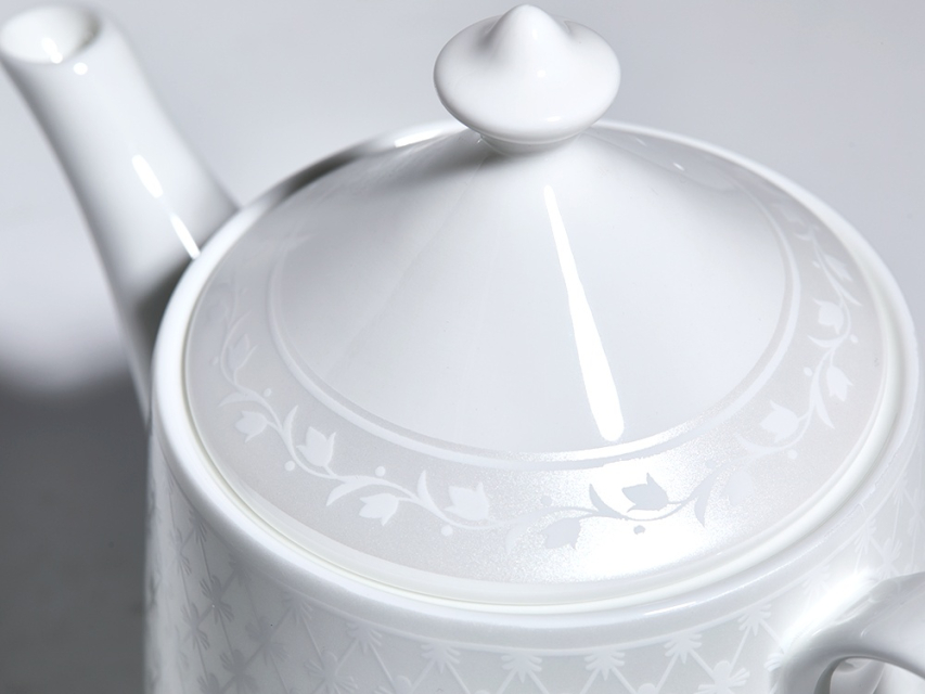 Чайник из коллекции «Жемчужная сетка» – это новое прочтение классического узора «кобальтовая сетка», ставшего визитной карточкой Императорского фарфорового завода. Дизайн строится на изящном контрасте фактур: благородную матовую поверхность украшает рельефный орнамент. Мягкое сияние перламутра и лаконичные линии формы «Идиллия» подчеркивают изящество костяного фарфора, наполняя интерьер светом и аристократизмом.