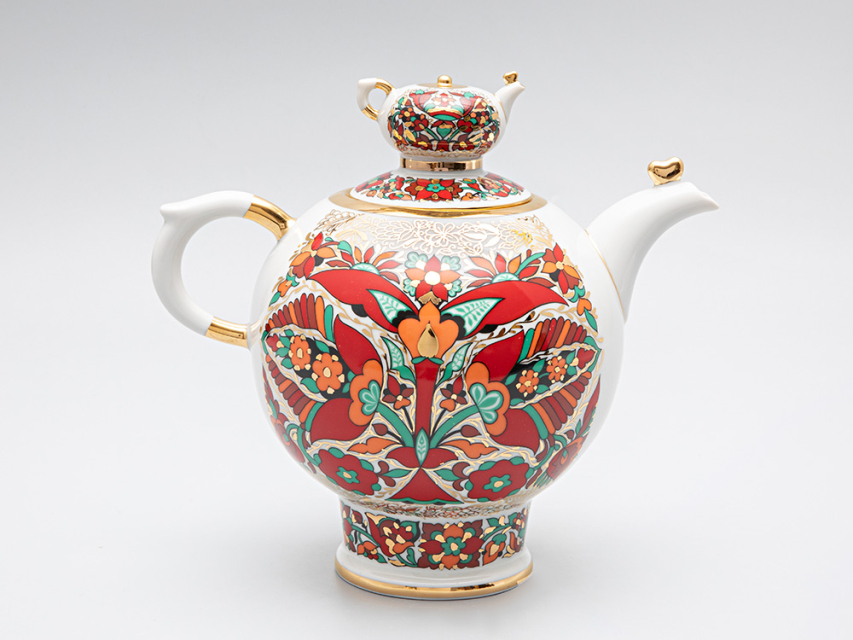 Чайник доливной с формой сказочного петуха от Императорского Фарфорового завода - это прекрасный подарок, практичный и современный. Роспись выполнена в технике надглазурной живописи надглазурными красками и золотосодержащим препаратом.
