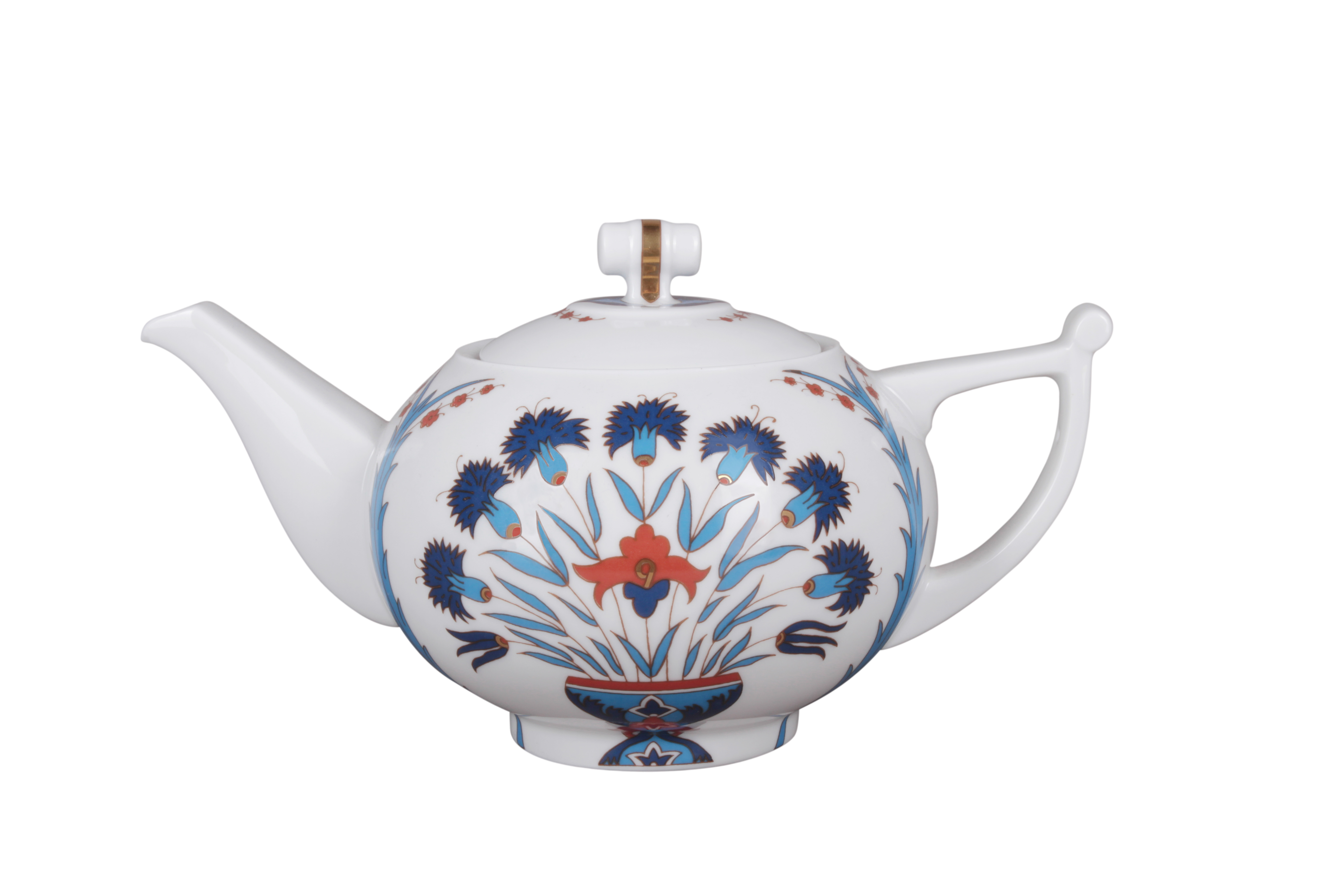 Декор выполнен по мотивам восточных росписей. Палитра росписи представлена васильковым, терракотовым и коричневым цветами, а вкрапления золота вносят финальный штрих в образ «Гюзеллик», что в переводе с турецкого языка означает «красавица».